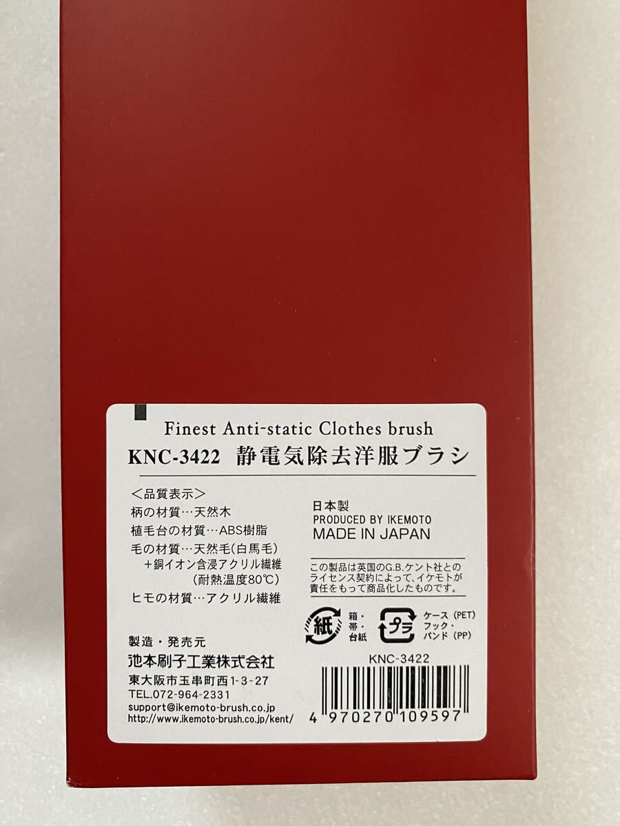 新品未使用品◆英国KENT社 イケモト 静電気除去洋服ブラシ 天然毛(白馬毛) 機能性洋服ブラシ 英国王室御用達 池本刷子工業
