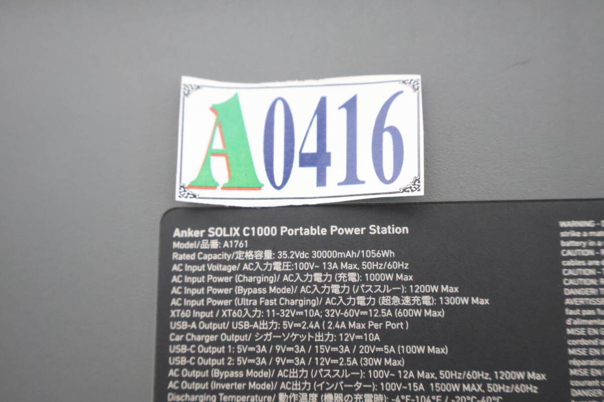 A0416 L アンカー Anker Solix C1000 Portable Power Station ポータブル電源 A1761 / 30000mAh/ 1056Wh (AC電源コード付き)