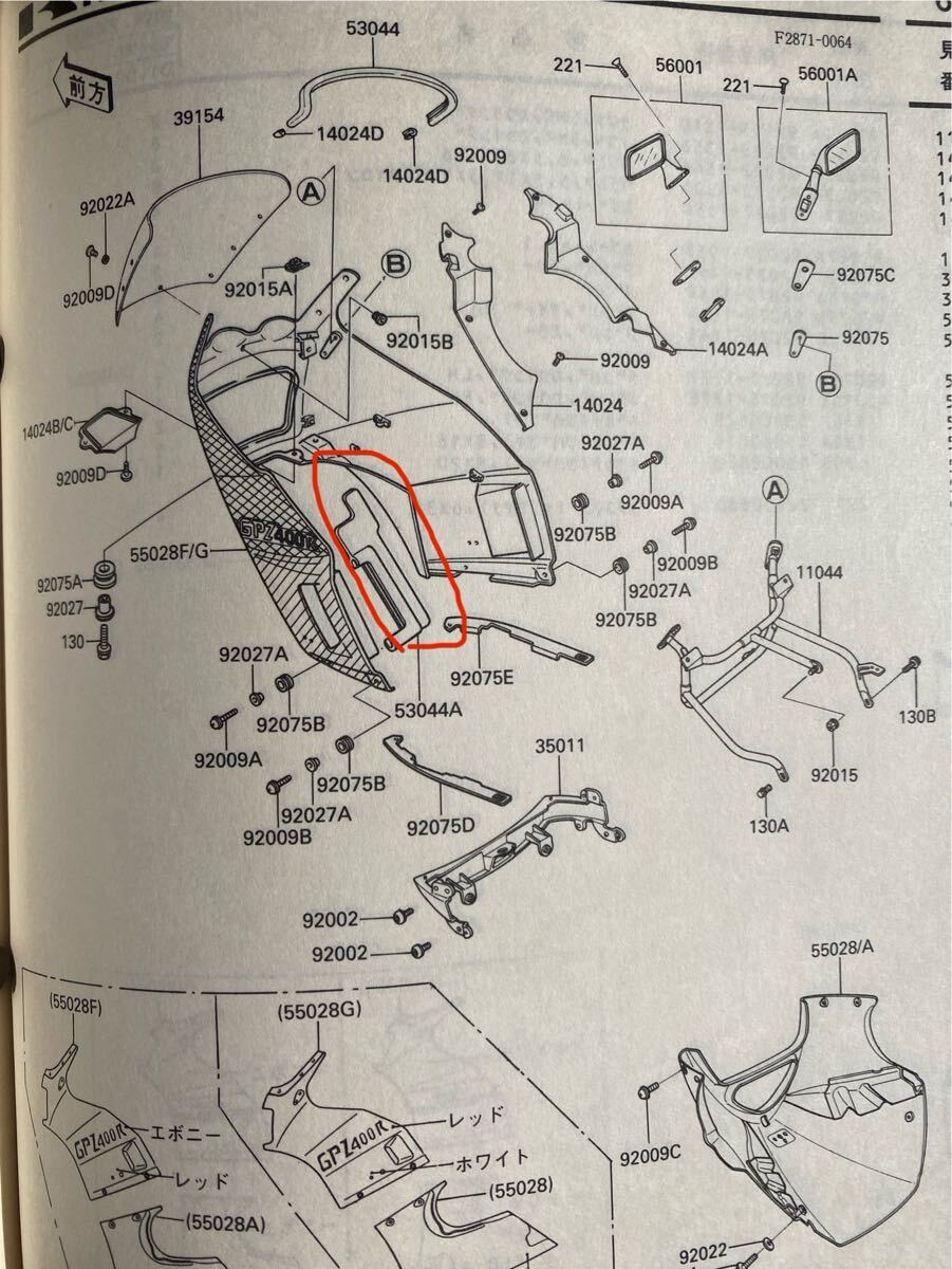 GPZ400R (ZX400-D) フロントアッパーカウル トリム 53044-1135 新品・未使用品