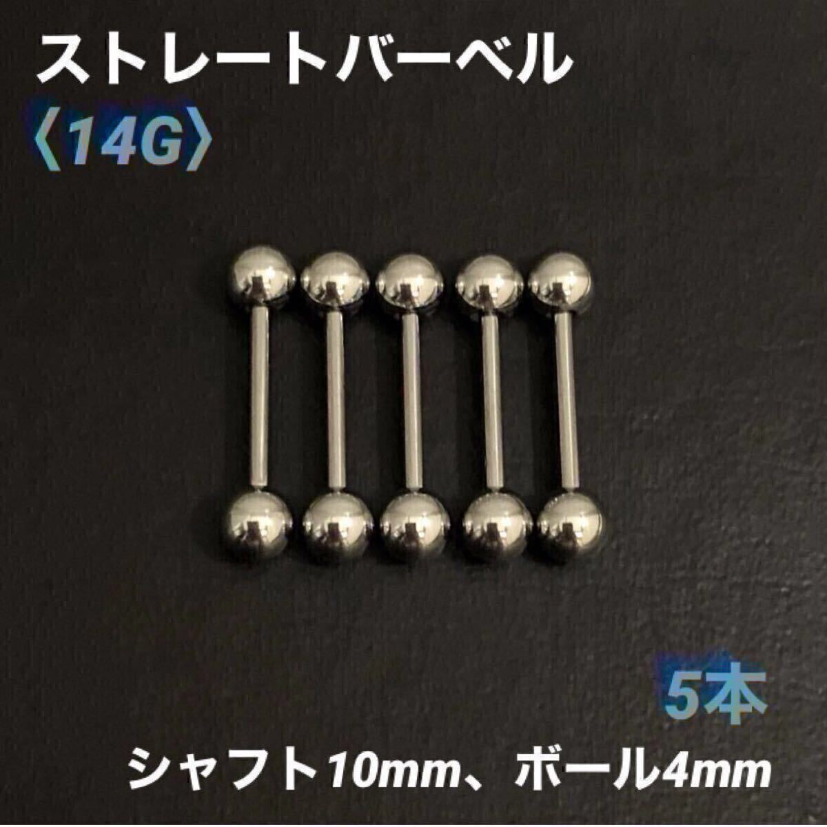 5本 ストレートバーベル 14Gシャフト10mm、ボール4mm ボディピアス