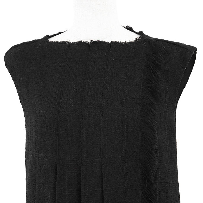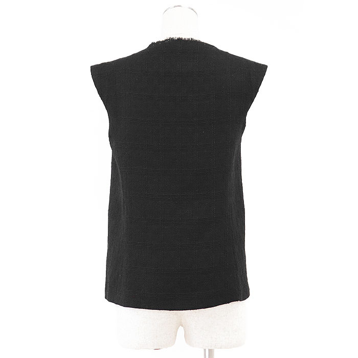 CHANEL シャネル ジレ P46324 ツイード ウール100% カットオフ フリンジ プリーツ ノースリーブ ベスト トップス レディース 36 黒 伊製