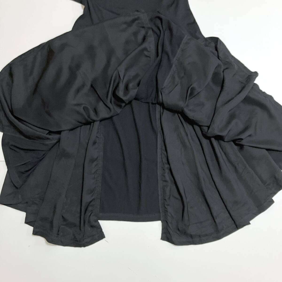 AD2022 コムコム COMME des GARCONS ウール キュプラ 切替 変形 ティアード 長袖 ワンピース 黒 Mサイズ コムデギャルソン archive 5080049