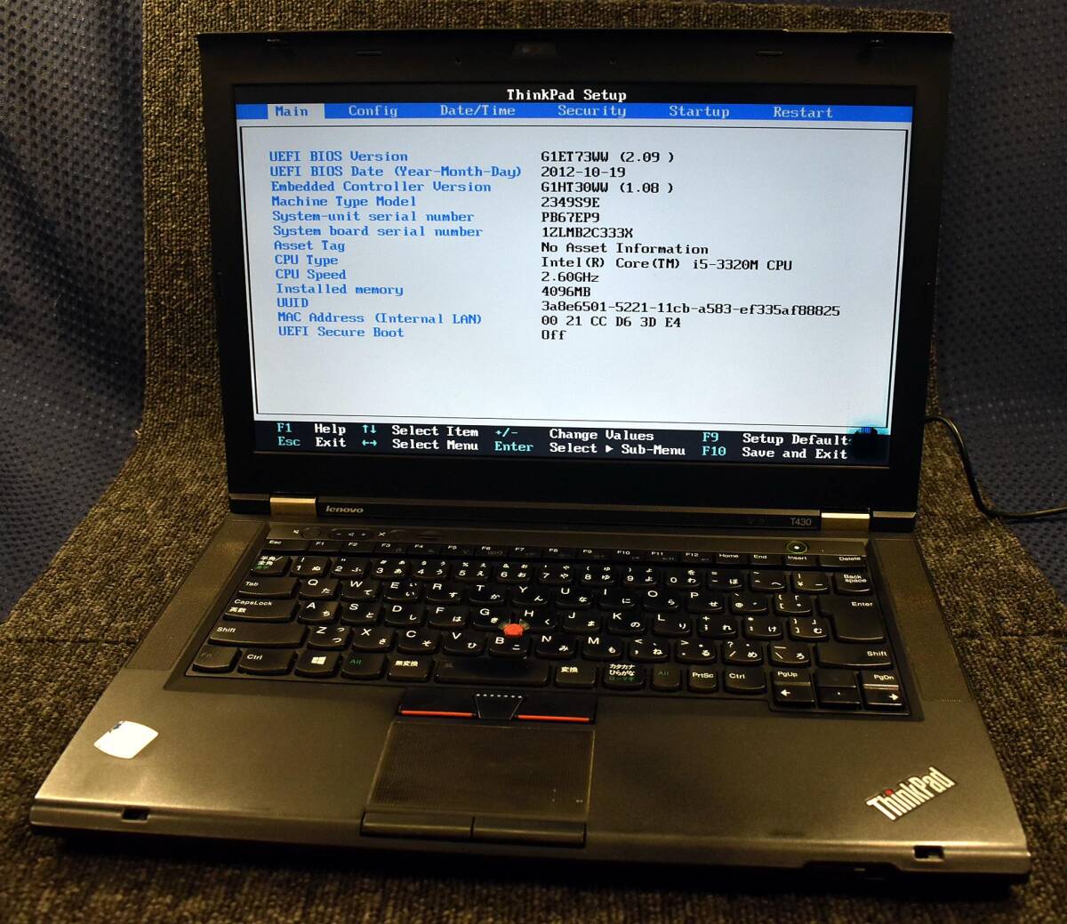 起動確認済み(ジャンク扱い) Lenovo ThinkPad T430 CPU:i5-3320M RAM:4G HDD:無し 本体のみ (管:KP1072