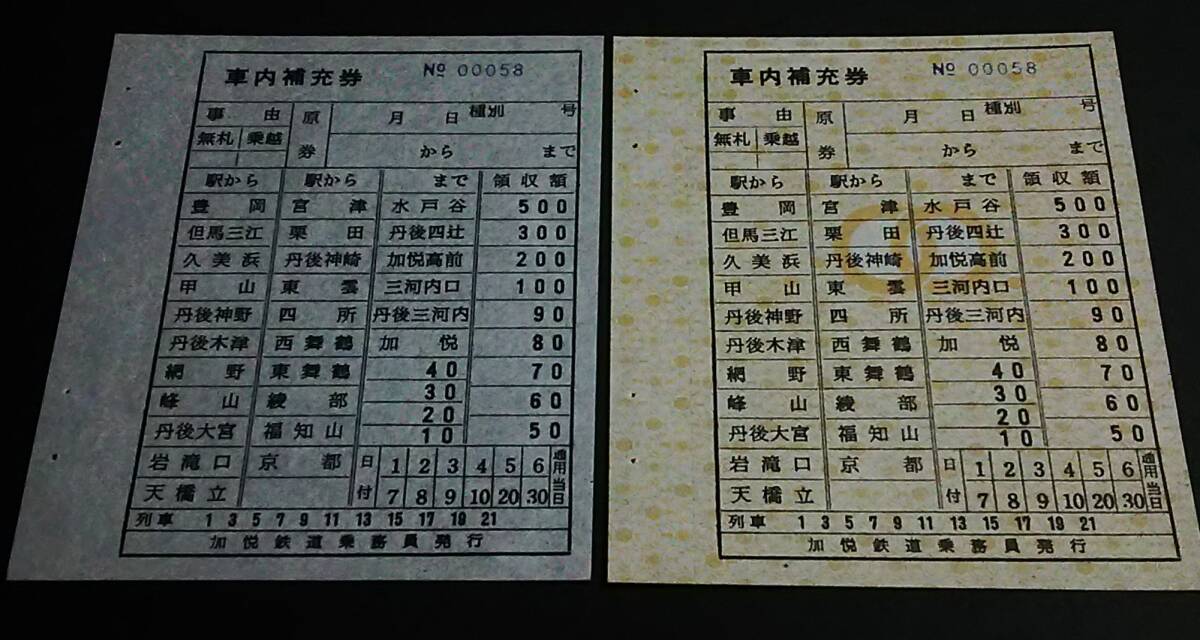 【車内補充券(連絡)[廃線]】 加悦鉄道(発駅国鉄) 甲乙券 [廃札]