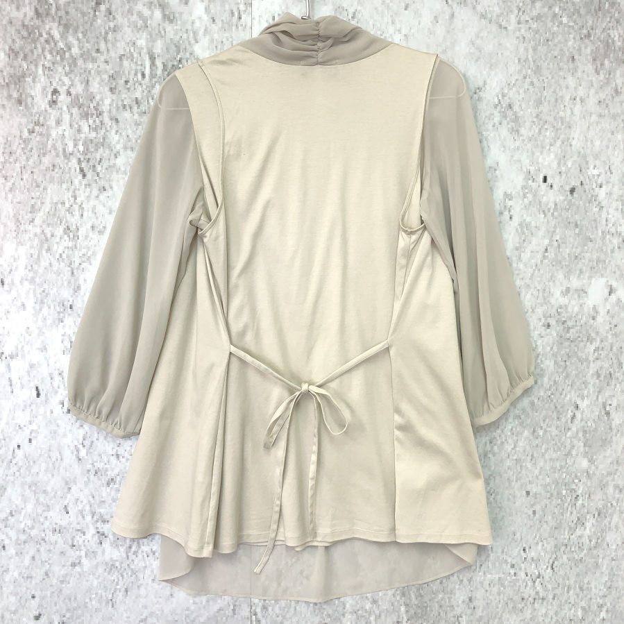 Modify モディファイ シフォン ドッキング ジレ × 七分袖 ブラウス アイボリー 40サイズ □〇