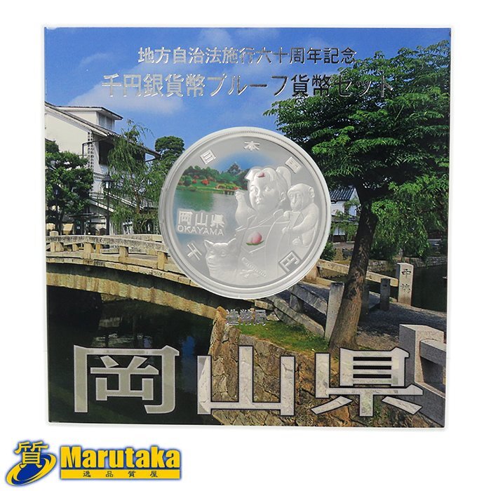 未使用 記念硬貨 地方自治法施行60周年記念 岡山県 1,000円銀貨幣 純銀 造幣局 記念貨幣 ケース入り カラープルーフ銀貨 桃太郎 25k345-10