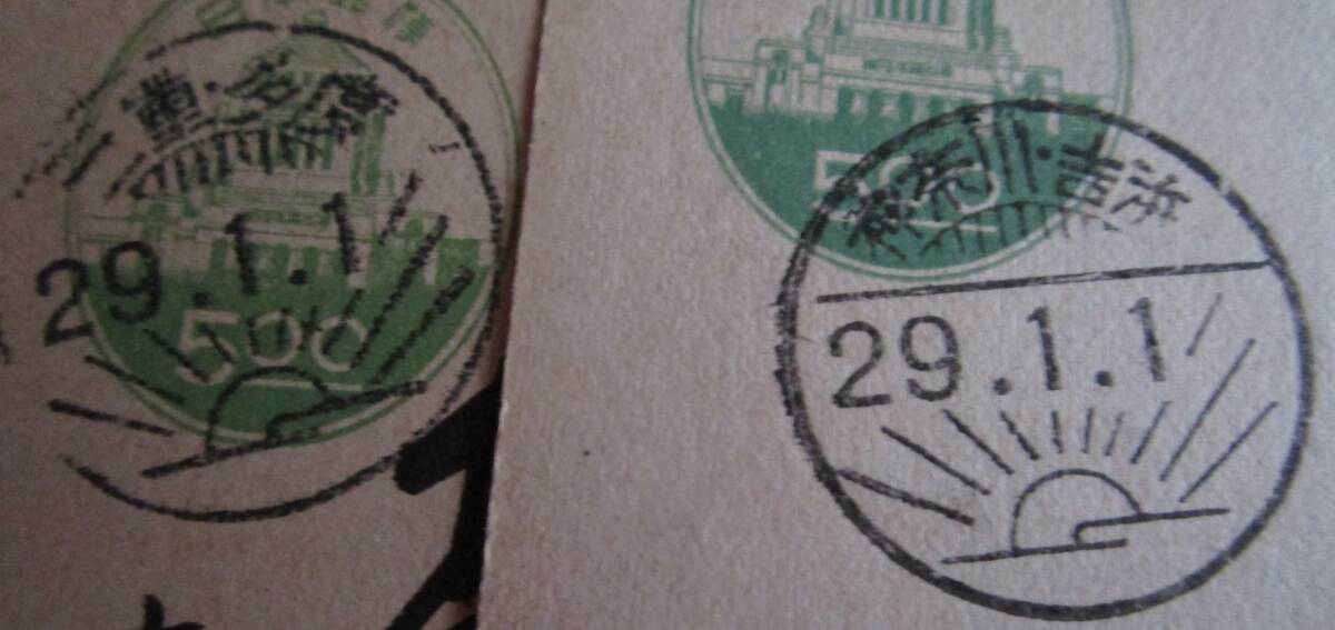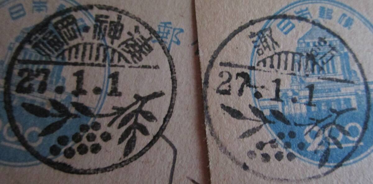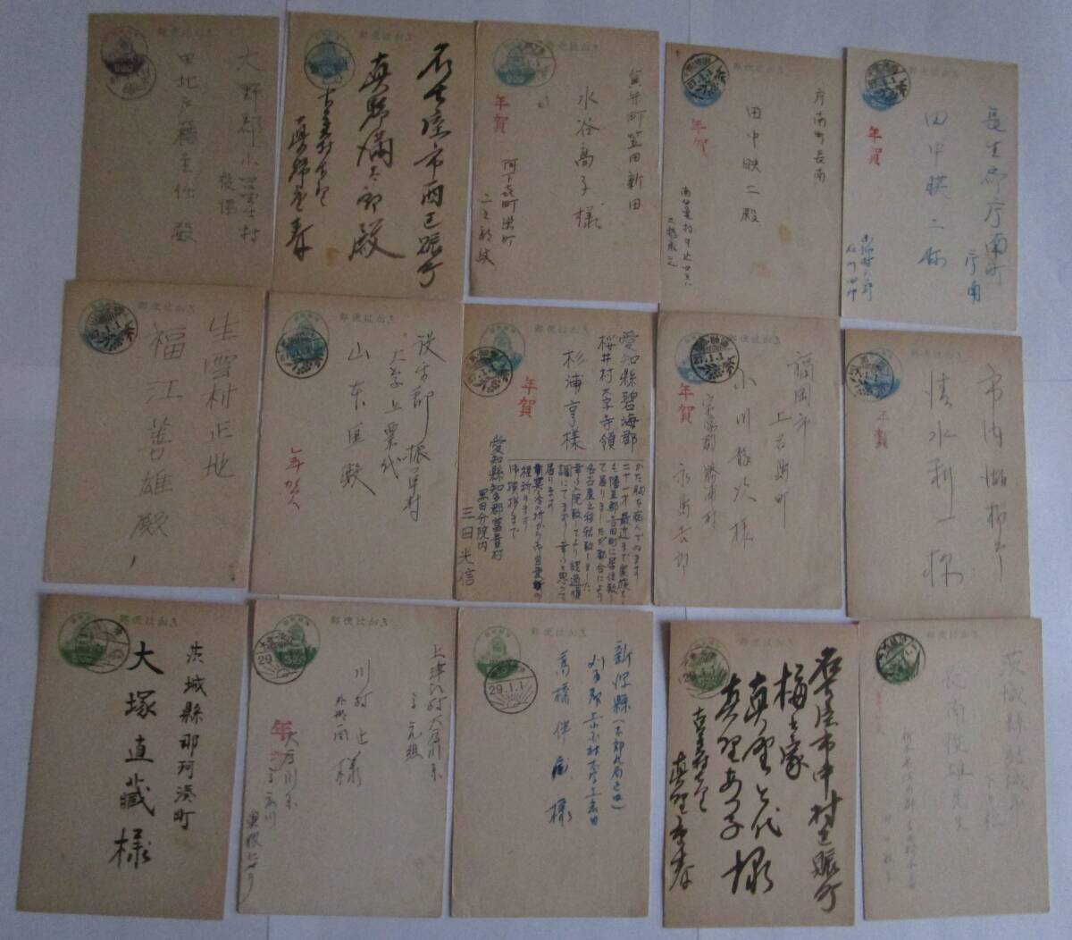 旧議事はがき絵入年賀櫛型印消しバラエティー15通