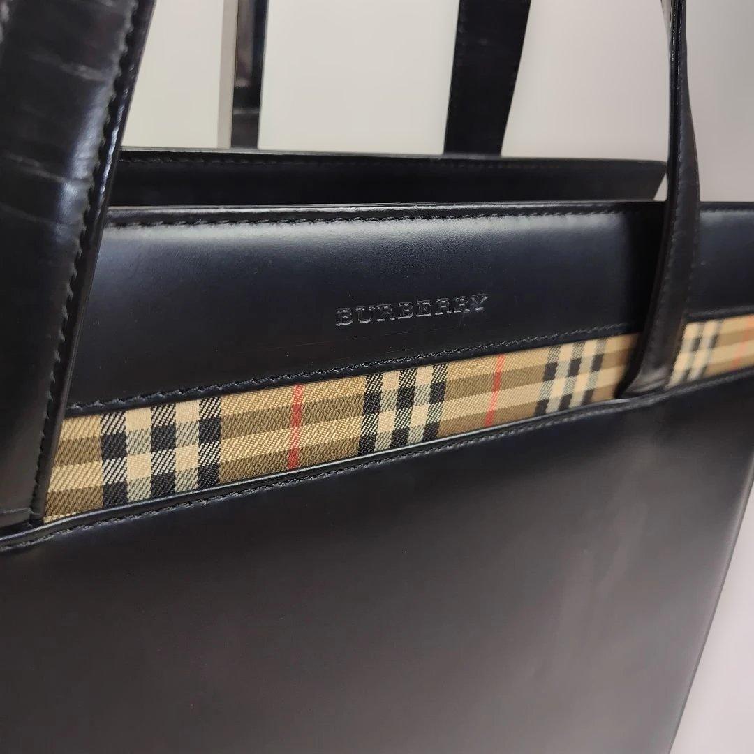 1円美品BURBERRY バーバリー ビジネスバック ハンドバッグ レザー ノヴァチェック ブラック