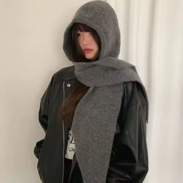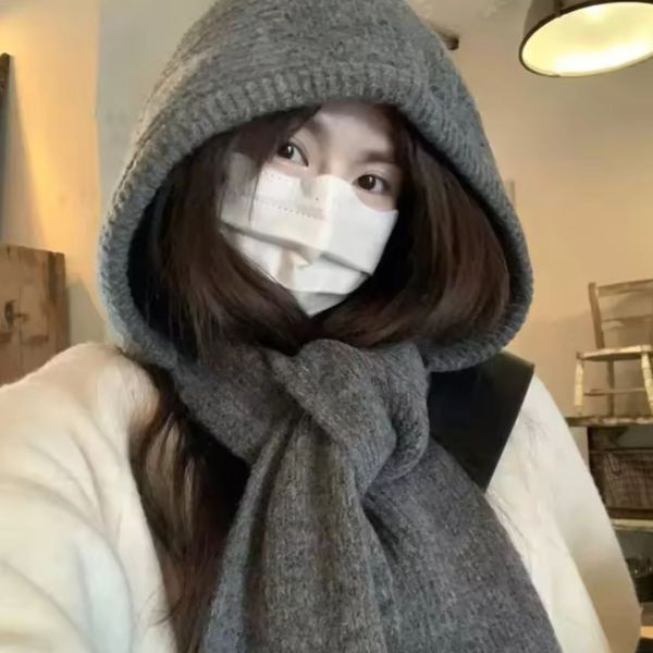 バラクラバ フード付きマフラー グレー アクリル ニット スヌード レディース 防寒 かわいい 冬小物