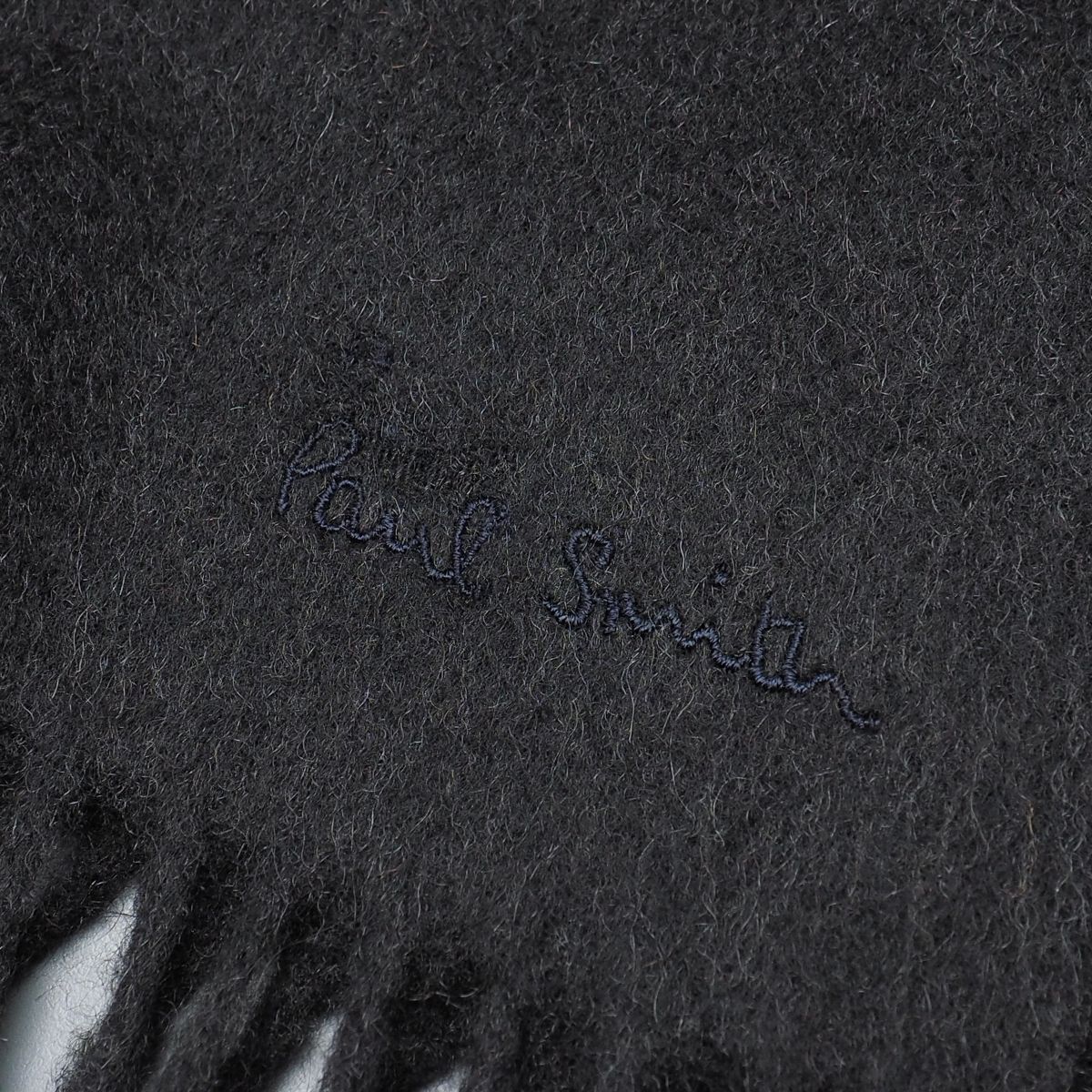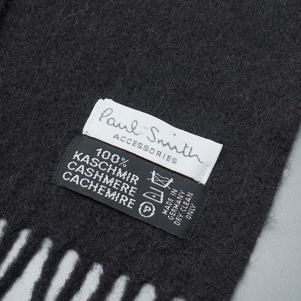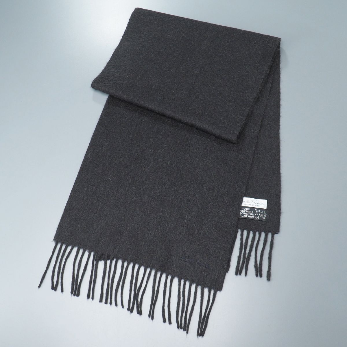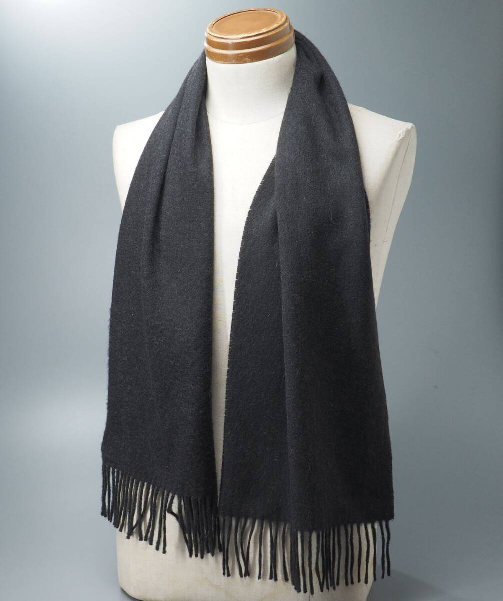 TI6888◎ドイツ製 Paul Smith ポールスミス 総カシミヤ マフラー ストール ショール ロゴ刺繍 ダークグレー系 メンズ