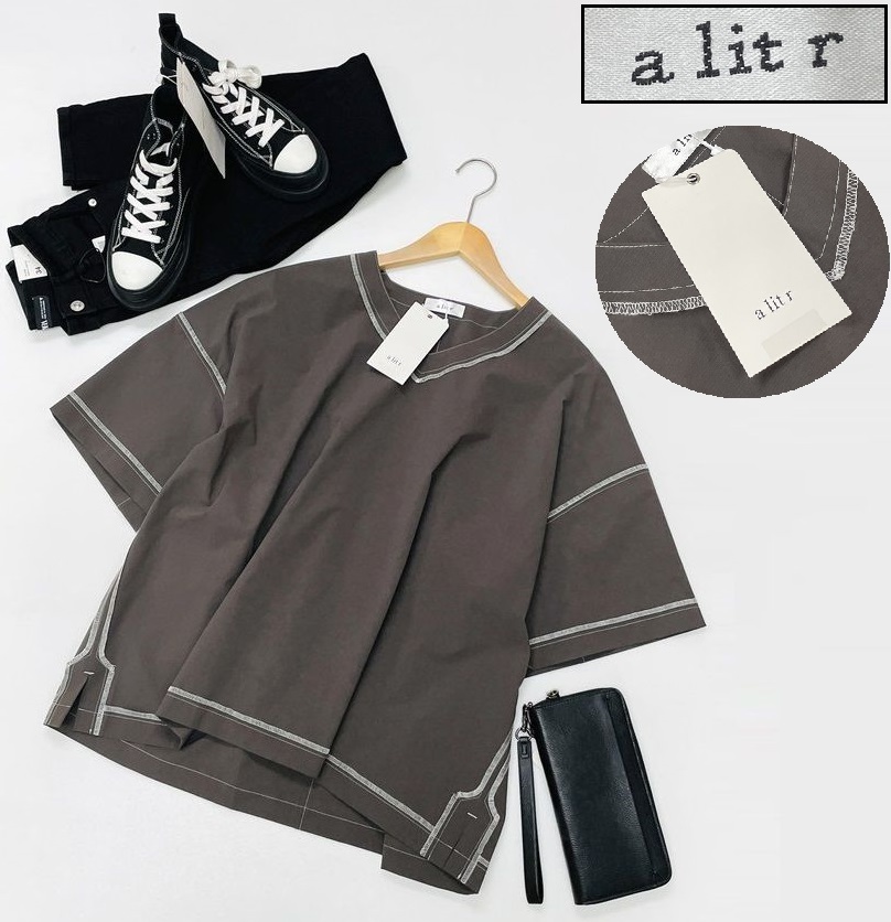 /M/ a lit r グレー 半袖Tシャツ タグ アウトドア キャンプ スポーツ バイク カジュアル生地 オーバーサイズ ストレッチ アリトル