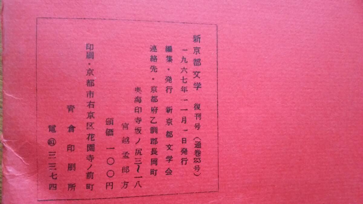文学雑誌『新京都文学 復刊号』1967年 新京都文学会 並品です Ⅵ1 土方鉄「鳥」小谷内忠司「空洞」宮越孟・丘風彦