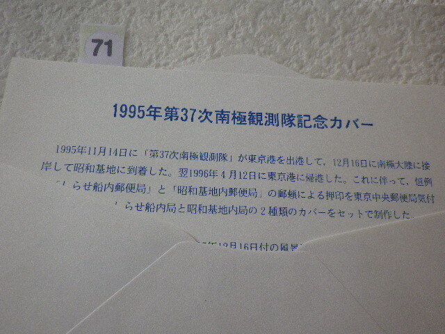 第37次 南極観測隊記念 2貼2消 1995年 解説書有 しらせ船内印●71●同梱大歓迎