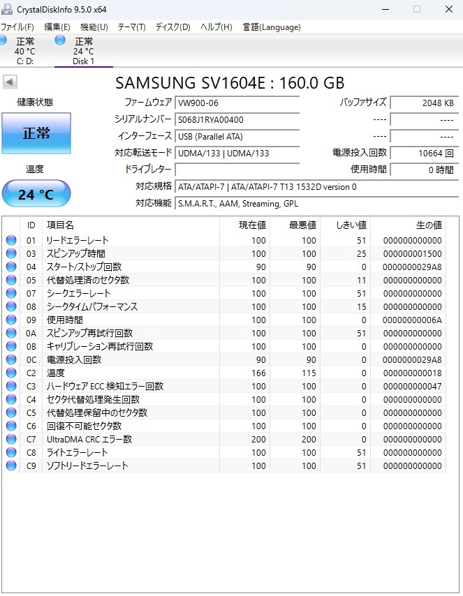 Samsung SpinPoint SV1604E 160GB IDE HDD 現状品