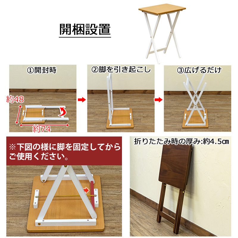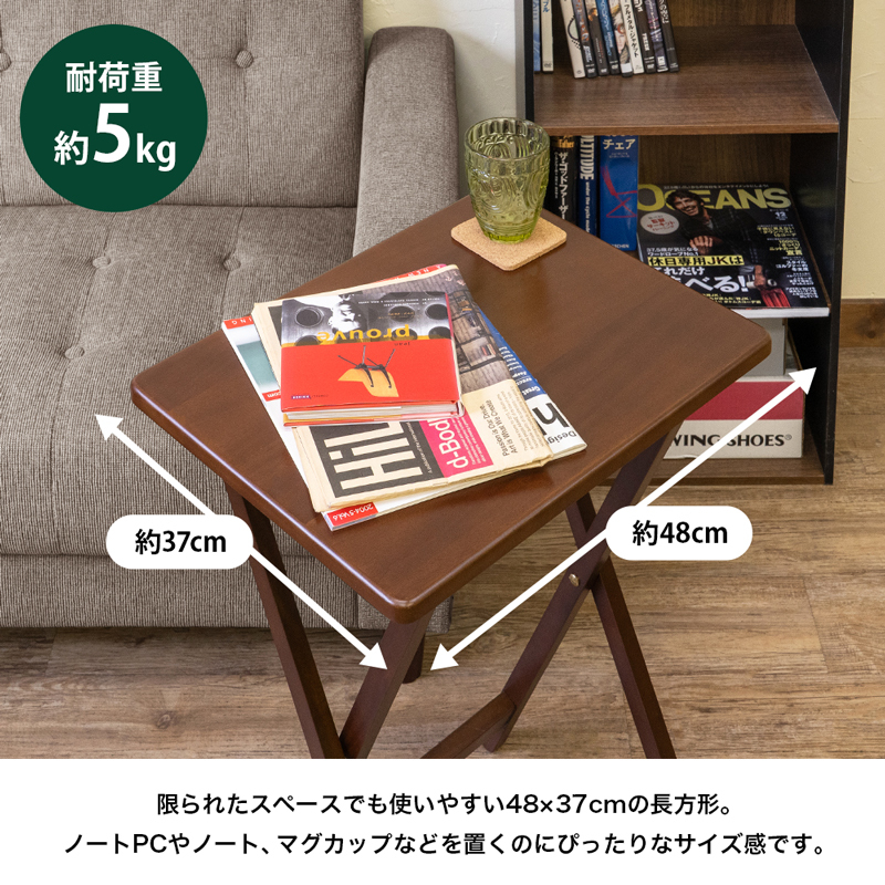 折りたたみデスク 48cm幅 木製 長方形 省スペース ソファサイド ベッドサイド テーブル IS-01 ブラウン(BR)