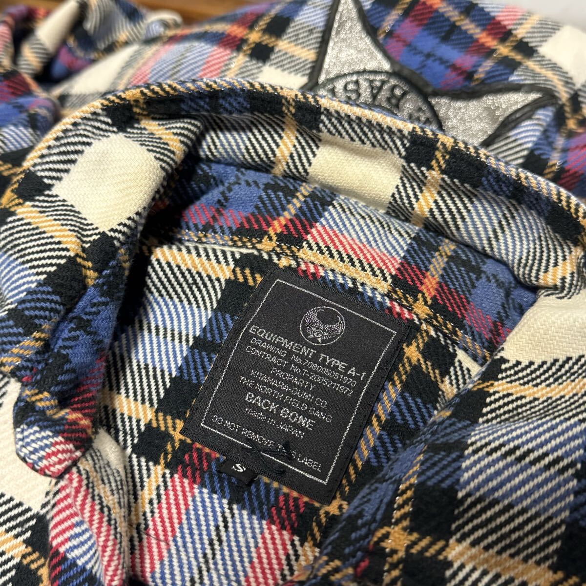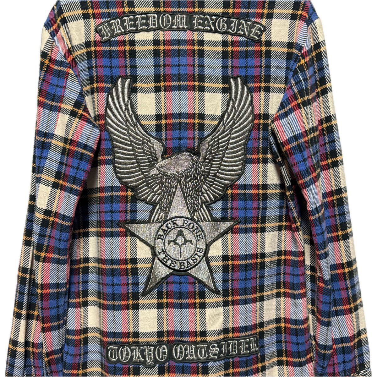希少【BACK BONE バックボーン】イーグル レザー 刺繍 パッチ/heavy flannel shirt/フランネル ネルシャツ チェックシャツ/長袖シャツ
