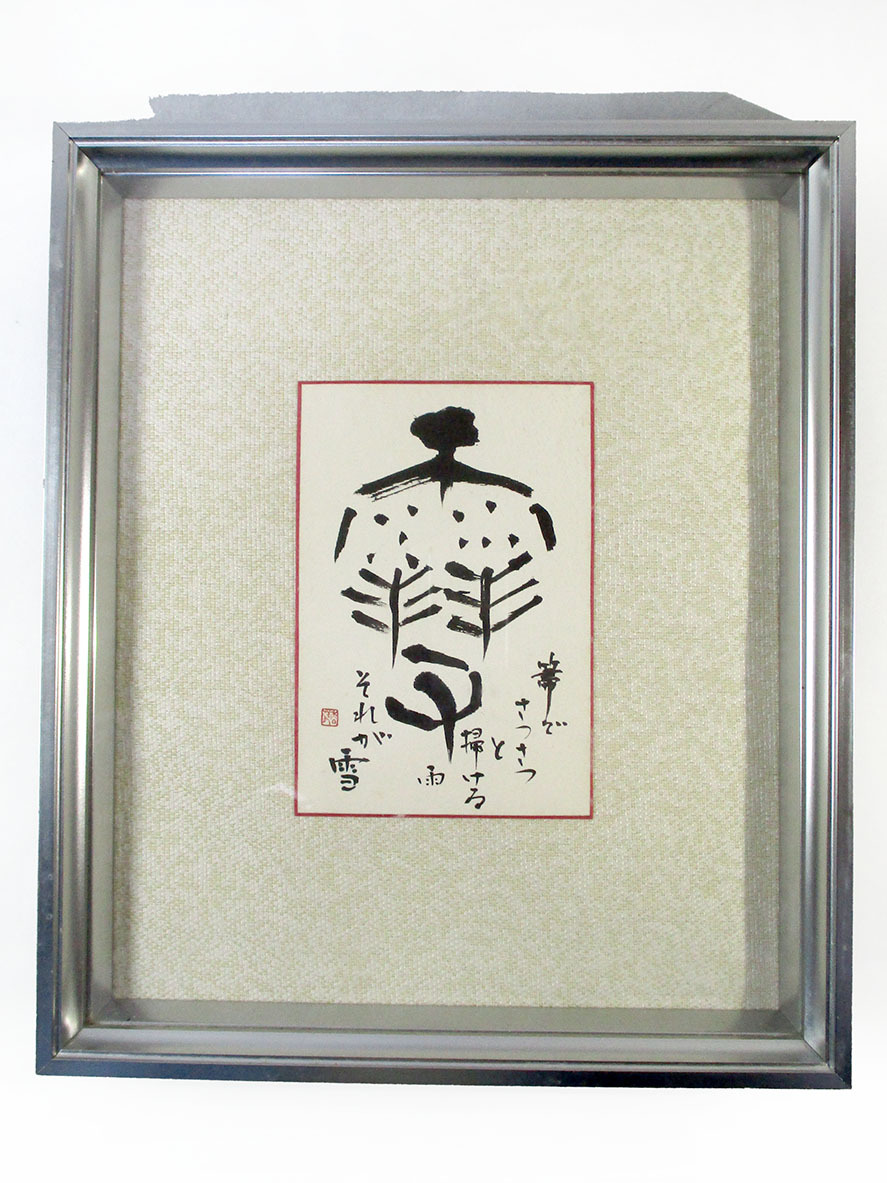 ★書画 「雪」 額入 28.5×33.5cm 中古★S13514