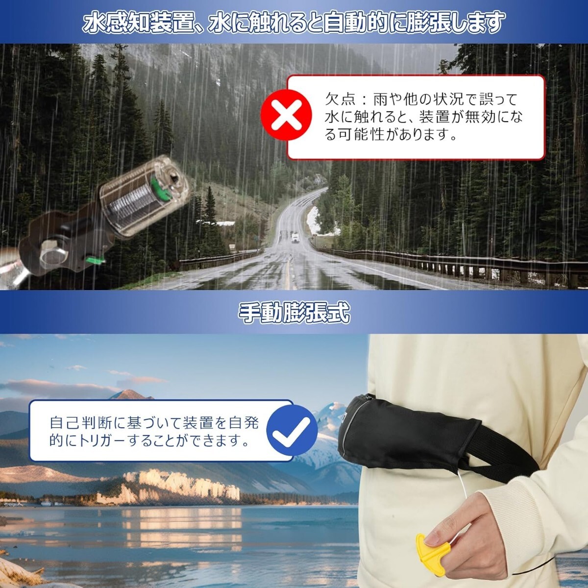 Owntop ライフジャケット 腰巻タイプ 手動膨張 ボンベキットあり ボンベ付き サイズ調節可能 コンパクト 大人用 軽量 耐久性 防水 セーリ