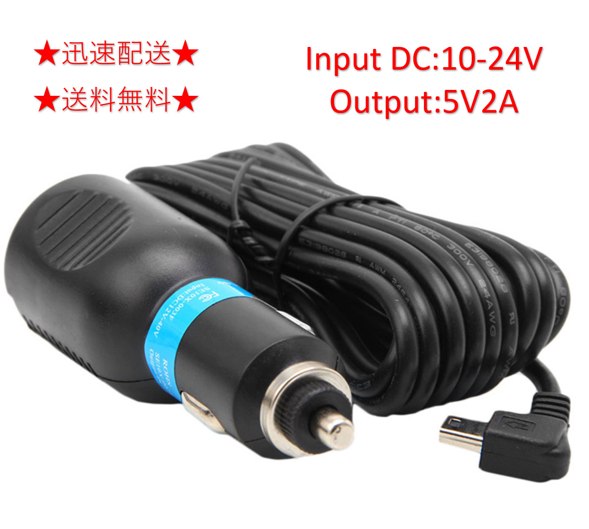 ★送料無料 車載アダプター ドライブレコーダー用電源 DC 12V/24V 対応 Mini USB 電源ケーブル シガーソケット 5V2A 電源直結コード 3.5M