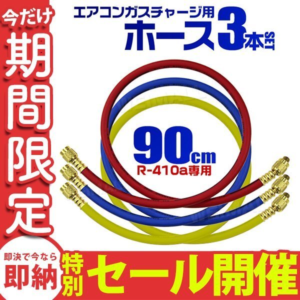 【数量限定セール】マニホールドチャージ ホース 3本セット R410A用 90cm エアコンガスチャージ エアコン修理 カーエアコン ルームエアコン