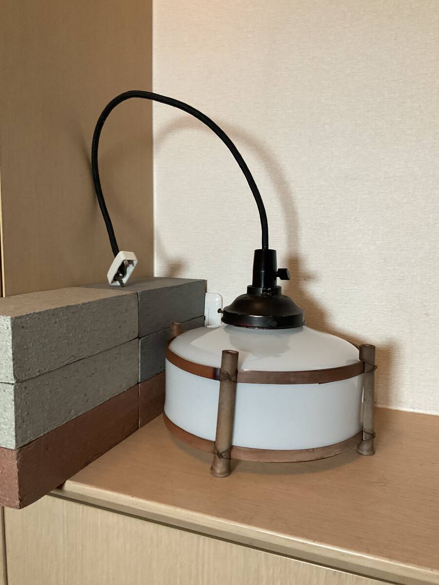 即決【昭和レトロ百貨店】竹巻乳白ガラスグローブ電笠付きペンダント照明 リフォーム 古民家 カフェ シェード