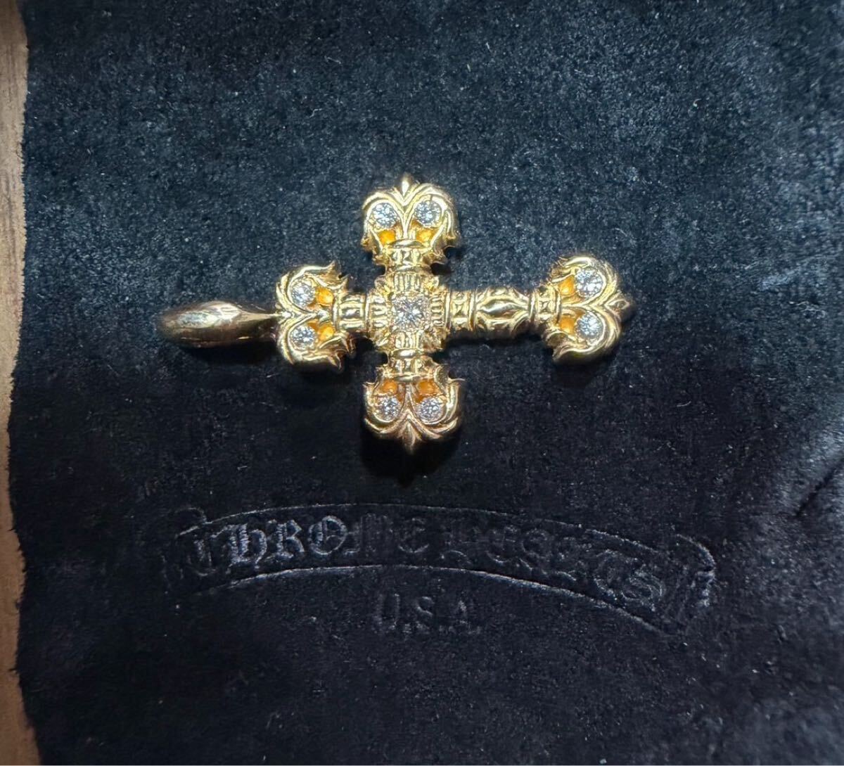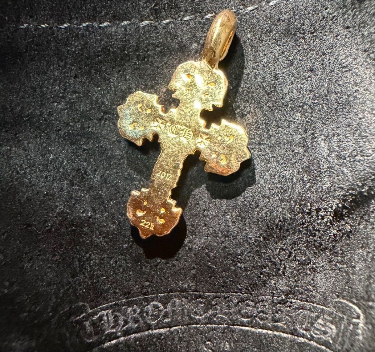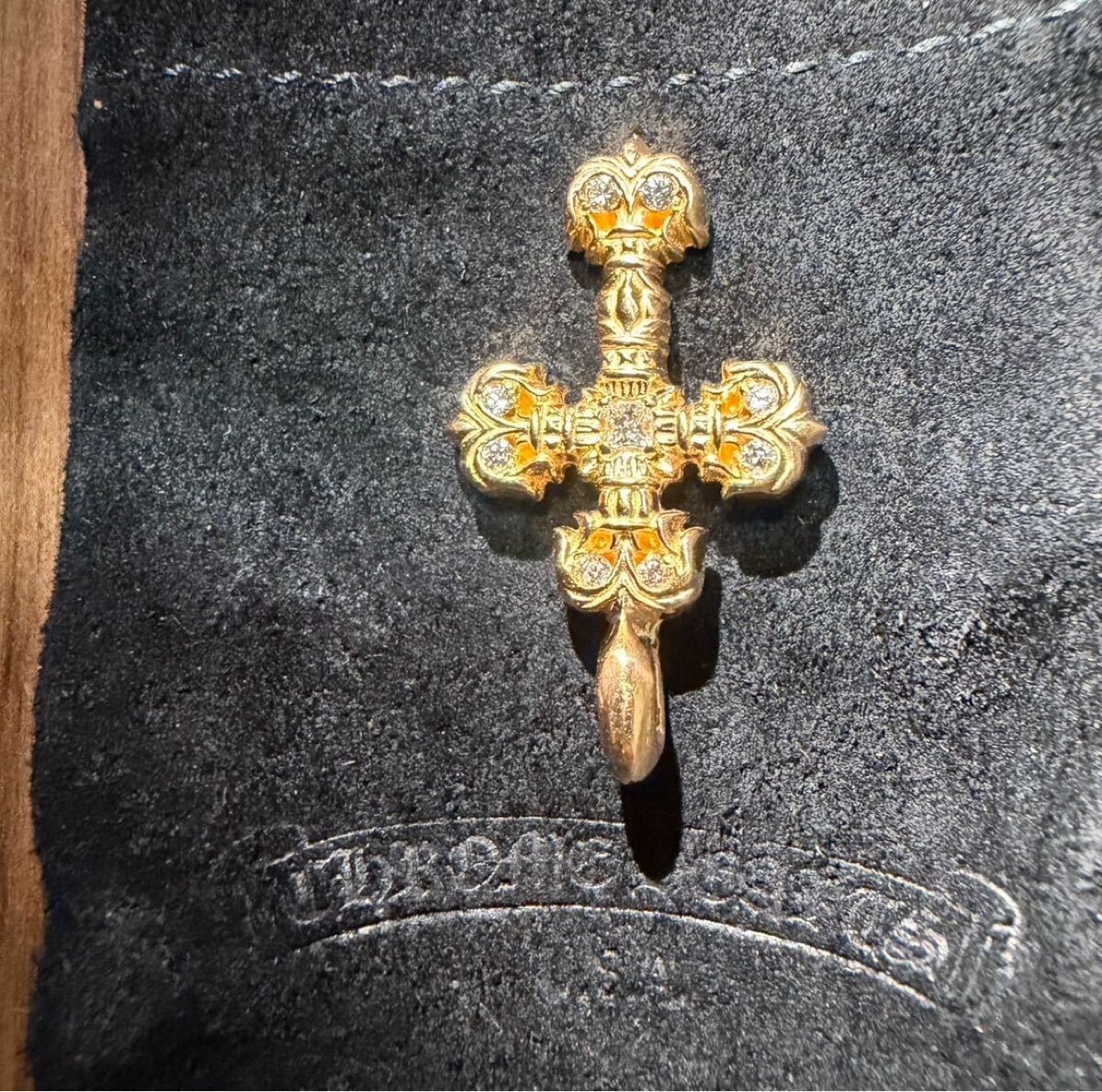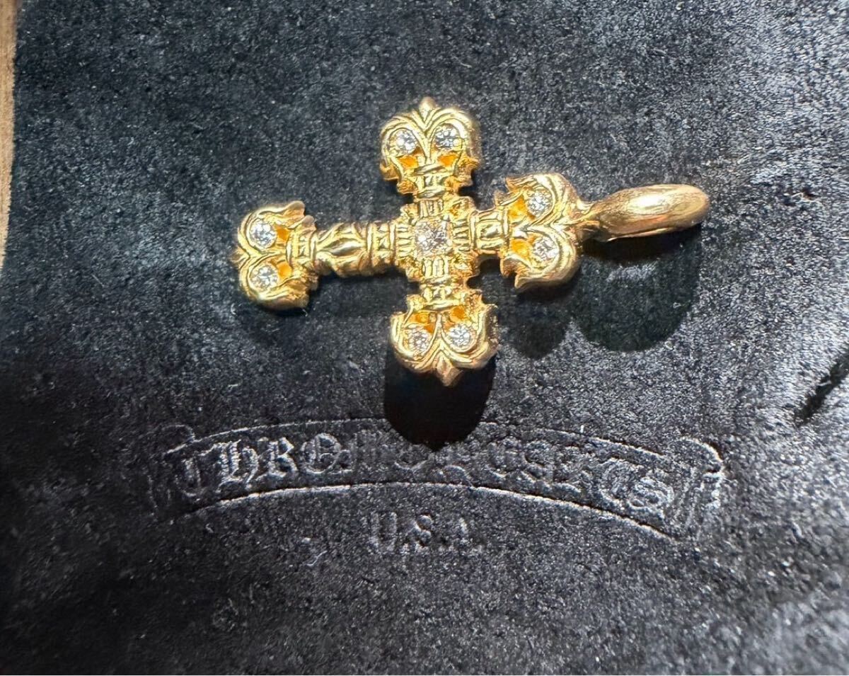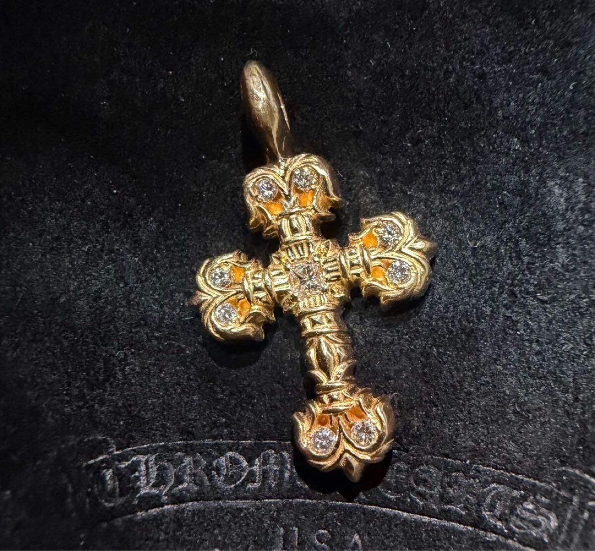 1円スタートクロムハーツ22kタイニーフィリグリークロスパヴェダイヤ チャーム 美品 送料込み