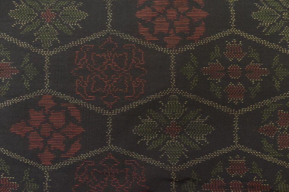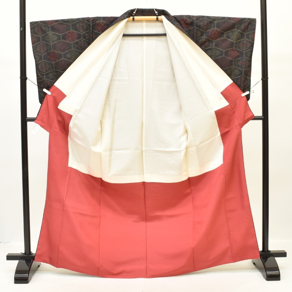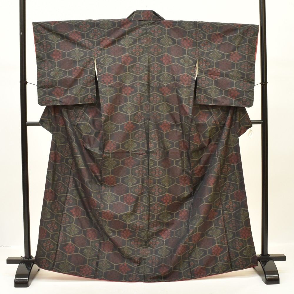 1円 アンサンブル 着物 羽織 大島紬 正絹 黒 身丈158cm 同梱可 【着物ひととき】 50990