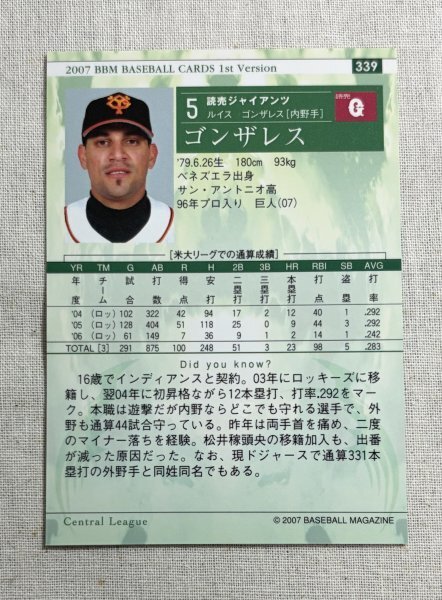 2007 BBM 1st ルイス・ゴンザレス #339★読売ジャイアンツ 巨人