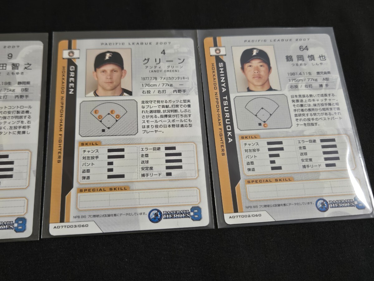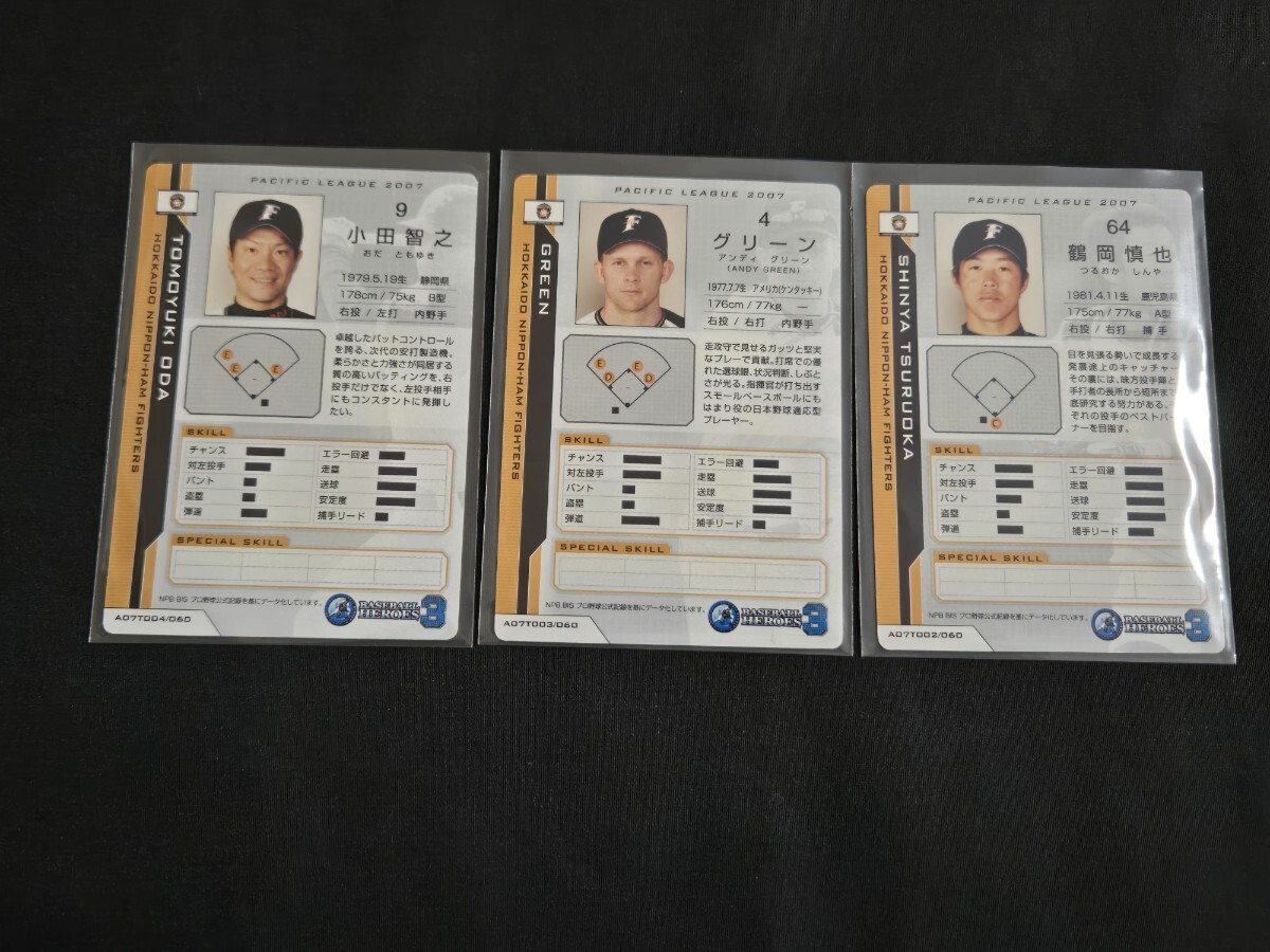 希少 BBH ベースボールヒーローズ カード ロケテ A07T002 鶴岡慎也 003 グリーン 004 小田智之 3枚 まとめセット ロケテスト