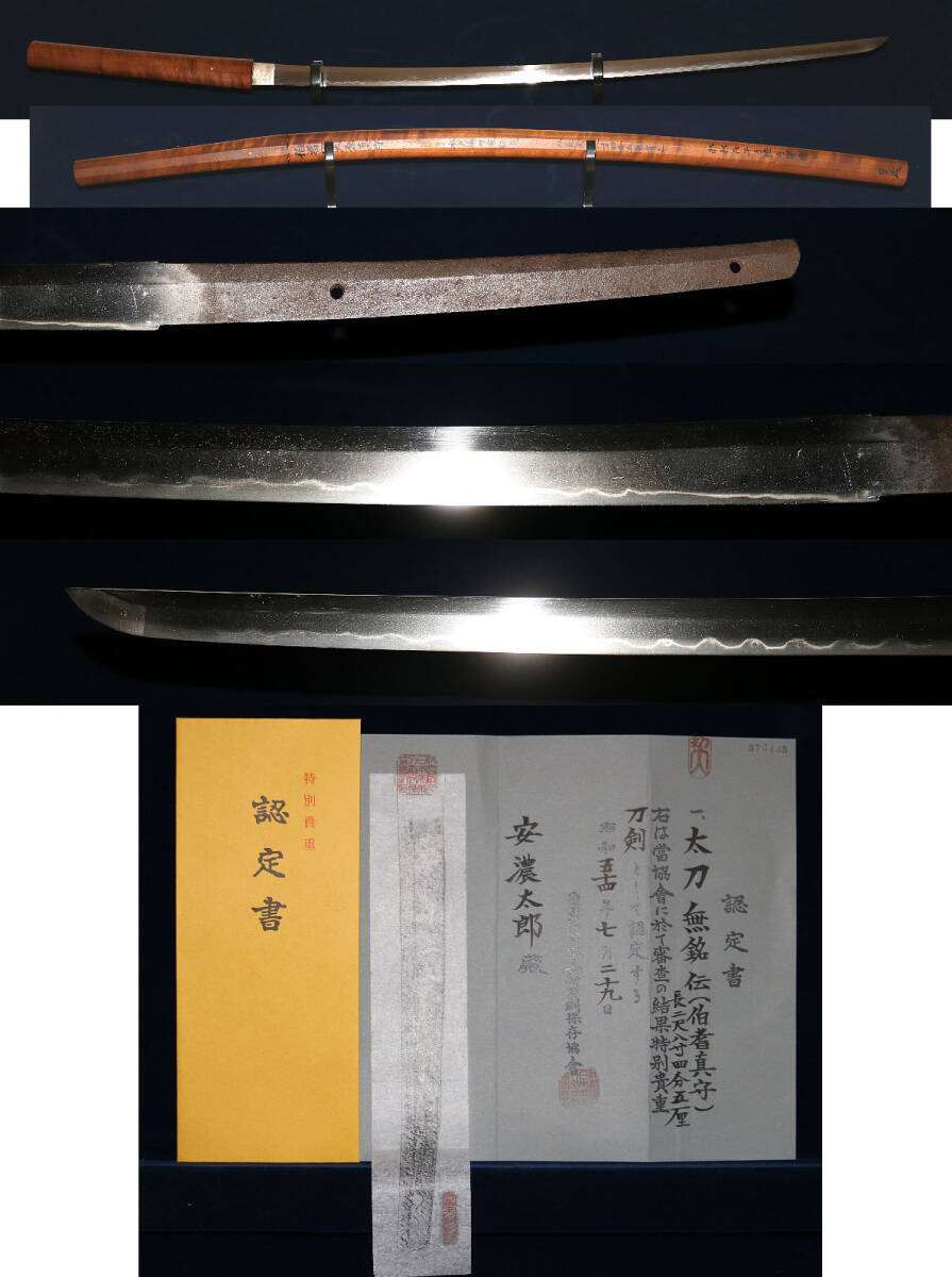 日本刀創世記平安時代の大名工(水戸徳川家伝来)「 伯耆国大原真守 」2尺8寸超え見事な産太刀姿・大名家御家古鞘書き有り・特別貴重刀剣