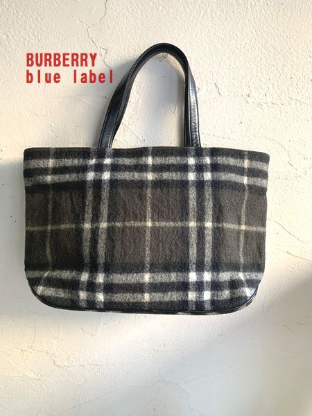 ◆N24◆BURBERRY BLUE LABEL バーバリー ブルーレーベル ウールトートバッグ チェック柄 グリーン ブラック