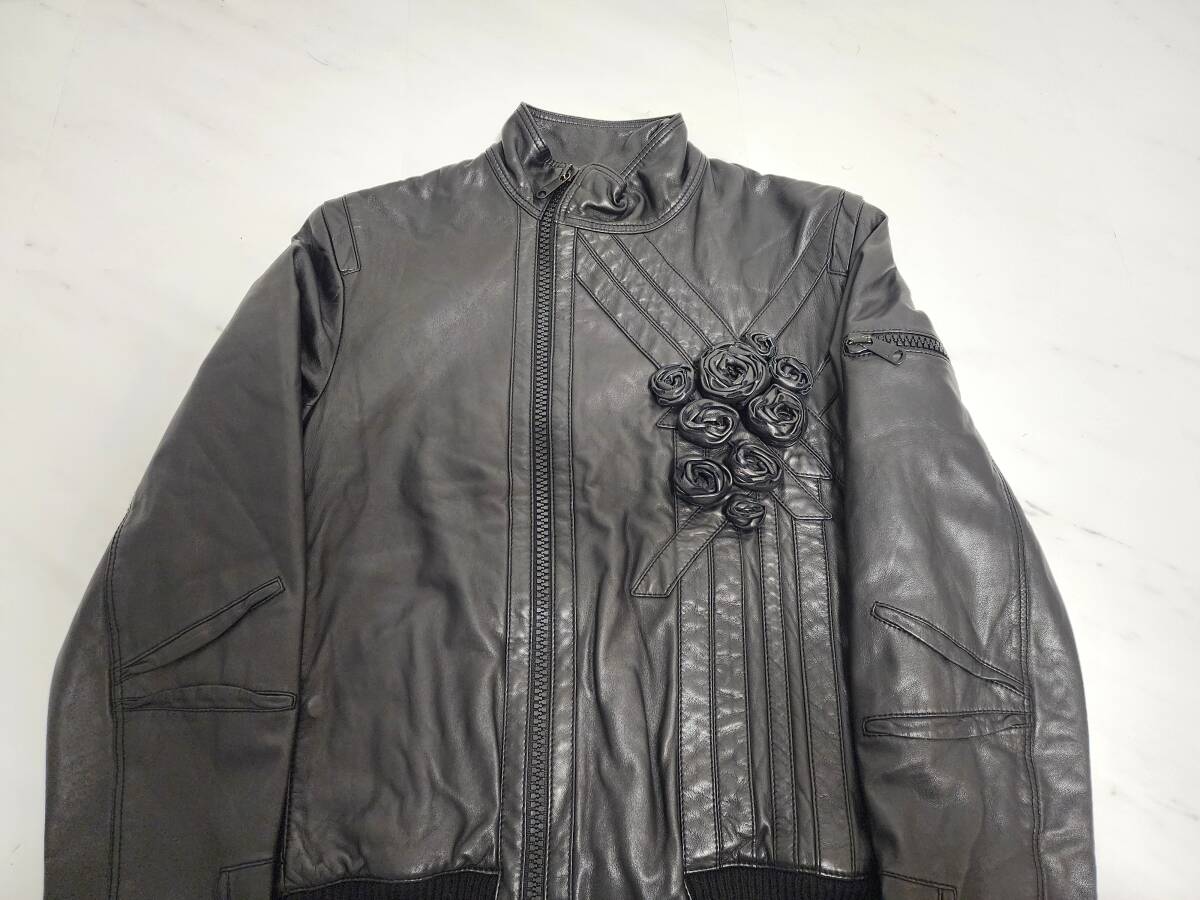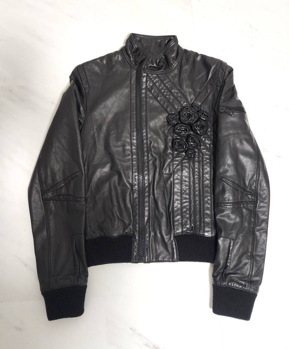 2005年AW ディオールオム 薔薇 レザージャケット 46 ブラック / ライダース 黒 メンズ エディスリマン Dior HOMME by Hedi Slimane