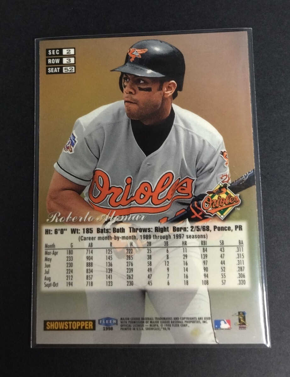 MLB 1998年FLAIR SHOWCASE ロベルト・アロマー(オリオールズ)SECTION 2 ROW 3 SEAT 52。ROBERTO ALOMAR ※裏面、初期スレあり(画像3)