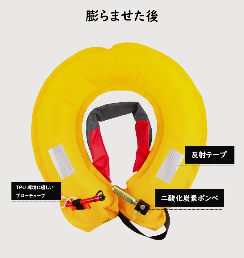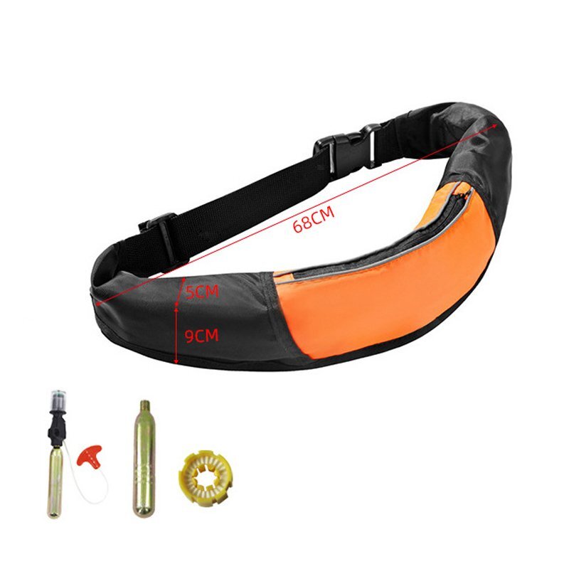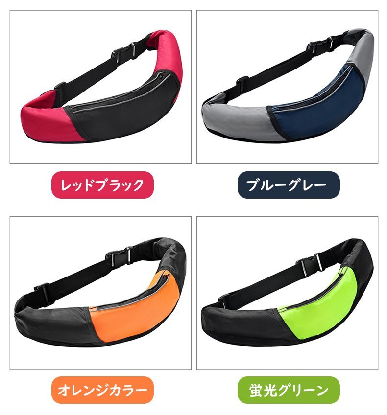 インフレータブルライフジャケット ウエストタイプ自動膨脹式 大人用 フリー 釣り用 軽量 男女兼用 収納ポケット付き グレー hw1088gy