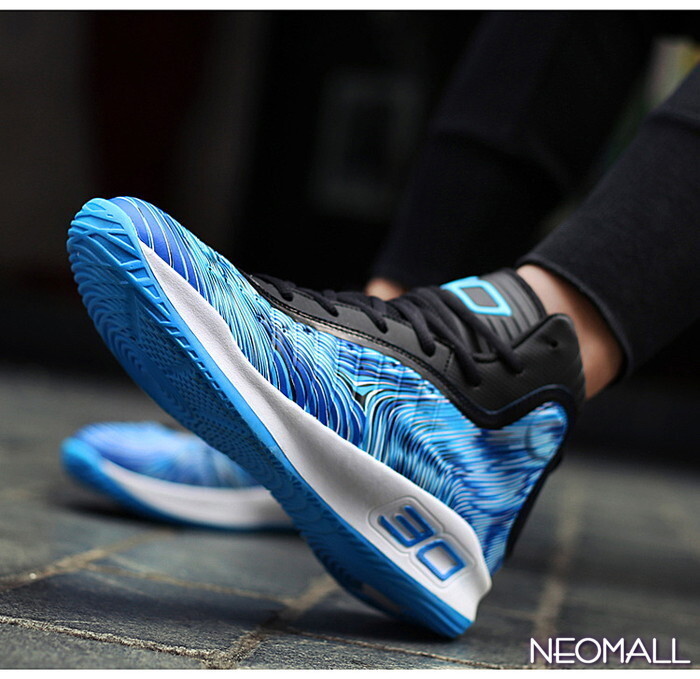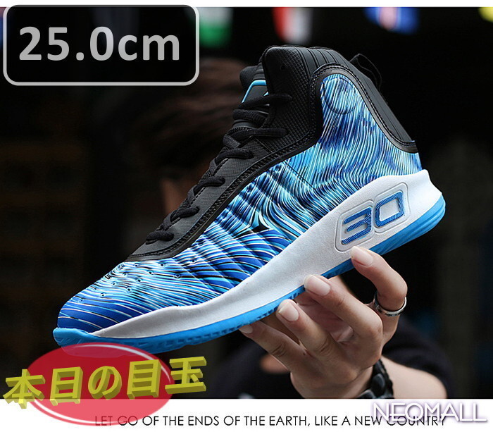 1スタ ☆ メンズ スニーカー 25.0cm ブラック × ブルー 靴 シューズ 防滑 バスケットシューズ 通勤 通学 旅行 【818】