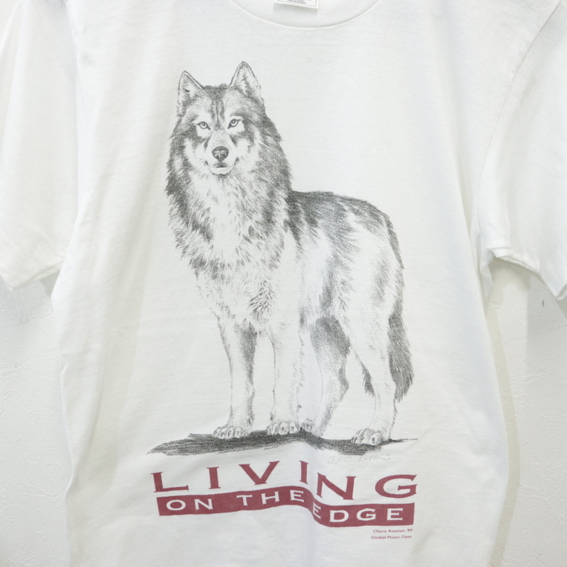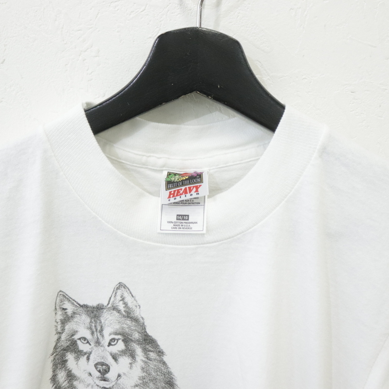 M524 90sビンテージ フルーツオブザルーム 半袖Tシャツ USA製■1990年代製 表記ボーイズ14サイズ 白 ホワイト アニマル ウルフ 古着 激安