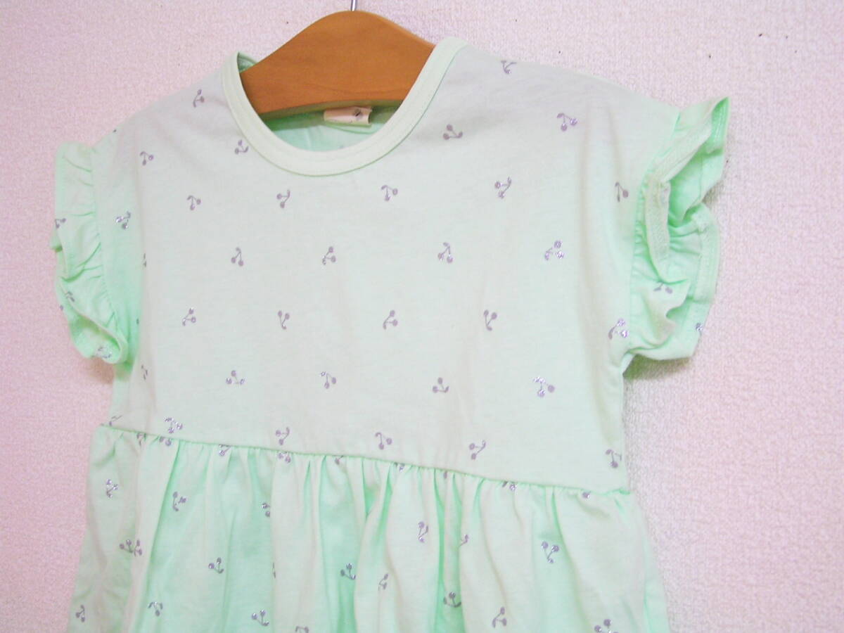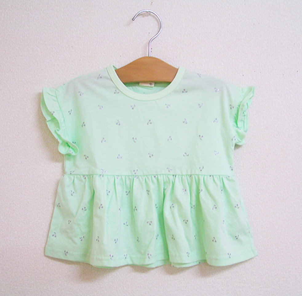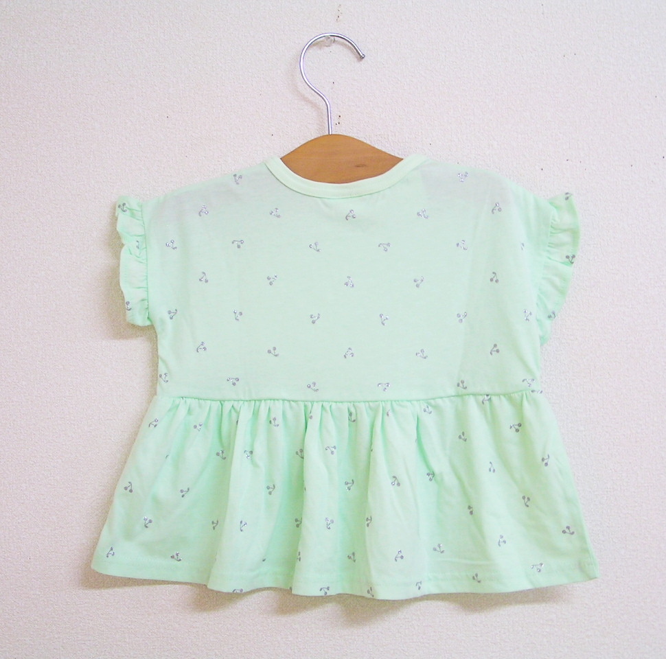 ★新品90cm★La poche biscuit 半袖Tシャツ (さくらんぼ総柄/ミント) ラポシェビスキュイ