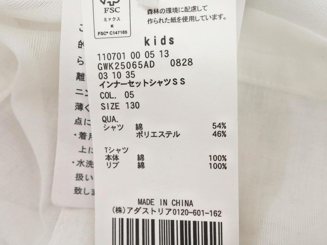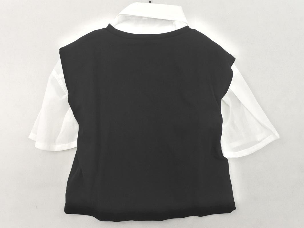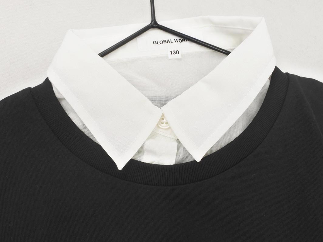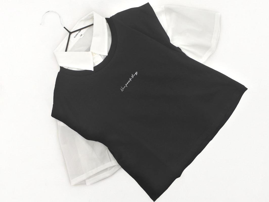 ネコポスOK 新品 GLOBAL WORK グローバルワーク レイヤード シャツ カットソー 130cm 白x黒 ■◆ ☆ ffc6 子供服