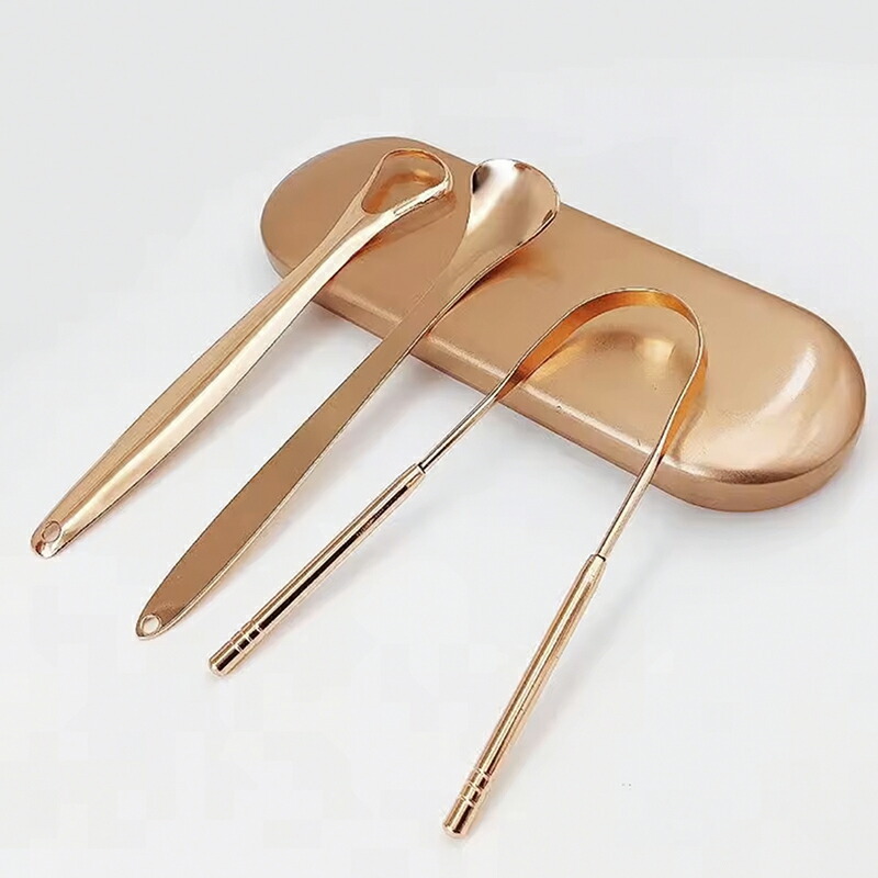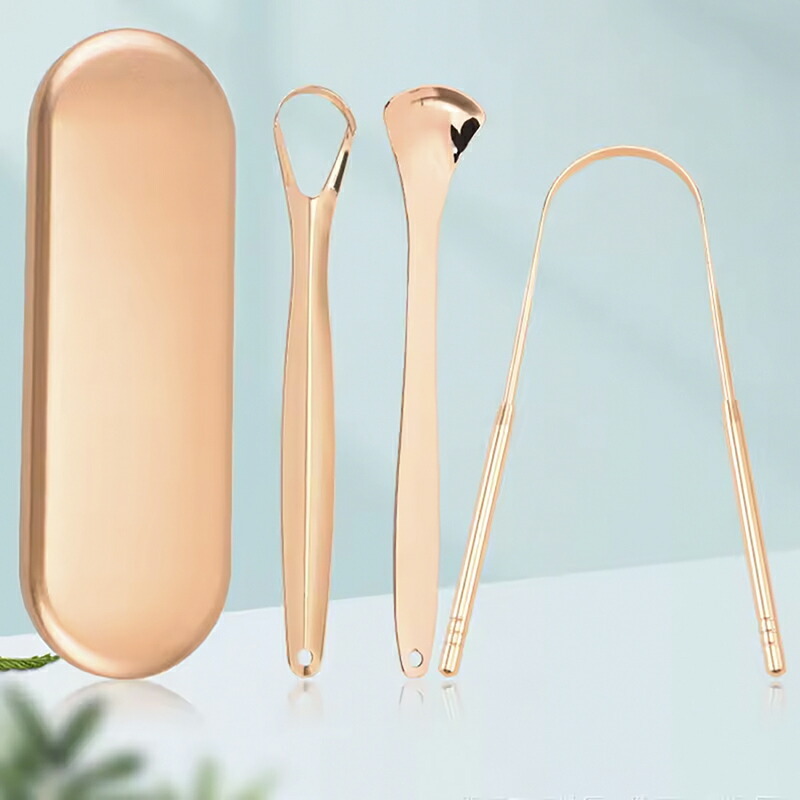 舌ブラシ 舌クリーナー 舌磨き ステンレス鋼 タングスクレーパー 口内ケア 口臭ケア 舌苔清掃 口臭予防 口臭対策 (ローズゴールド)