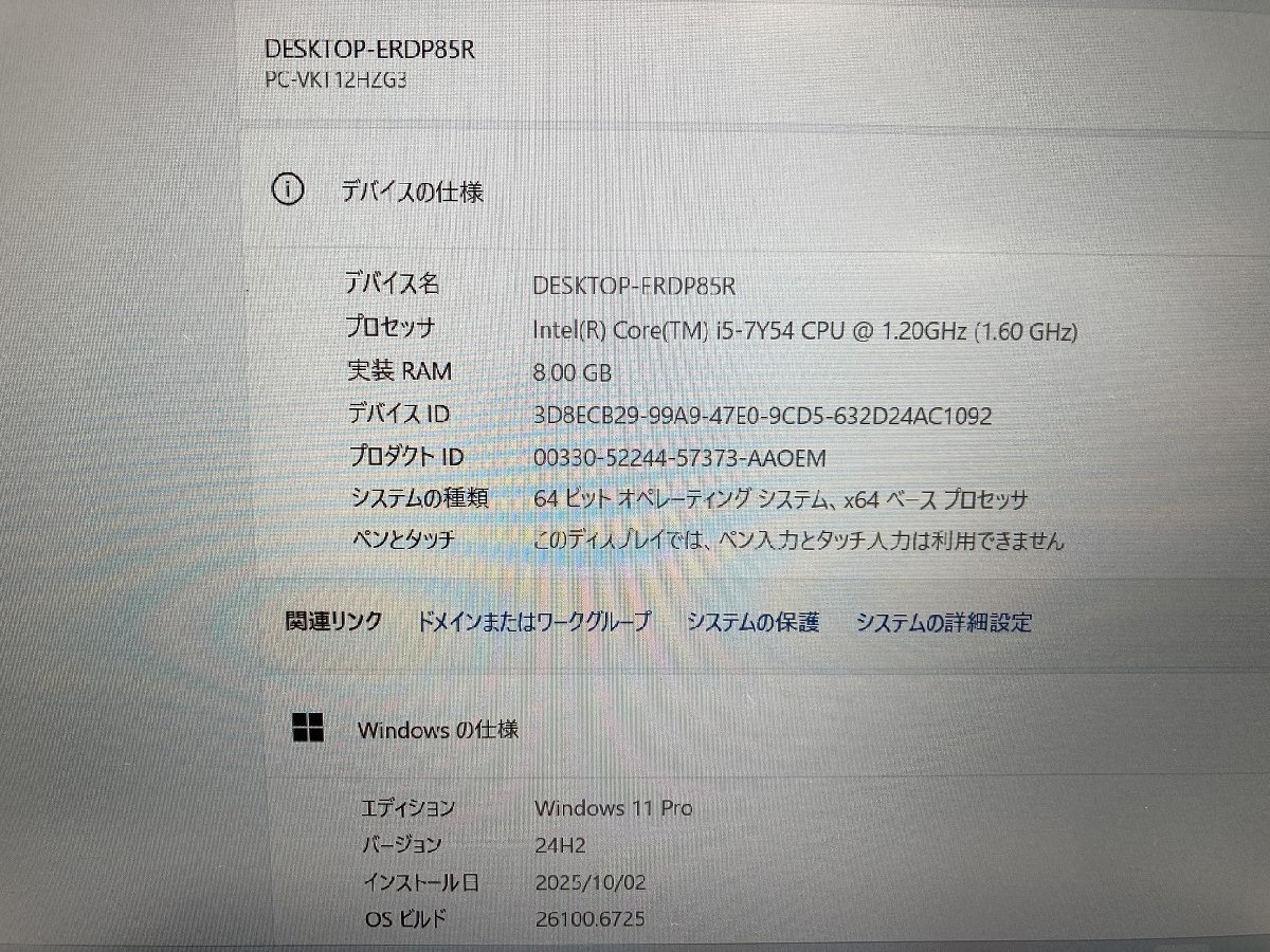 【大分発送】【動作確認済】NEC / VersaPro VKT12H-3 / Core(TM) i5-7Y54 CPU @ 1.20GHz( 1.60GHz) / 8GB / SSD 256GB/Windows 11 Pro