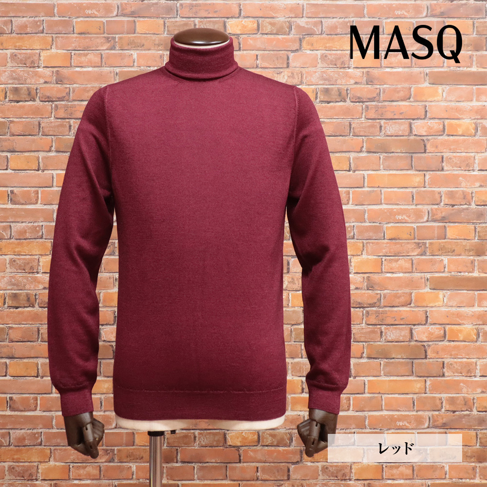 1円/秋冬/MASQ/Sサイズ/長袖ニット イタリア製 タートルネック 製品染め メリノウール Tollegno 1900 新品/赤/レッド/ma394/