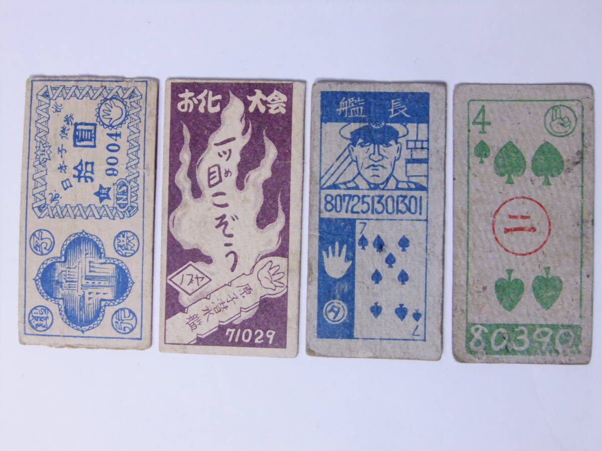昭和 めんこ 面子 妖怪メンコ 4枚 一つ目小僧 はんにゃ 鬼面人 らい婆 駄菓子屋 くじ引き オバケ
