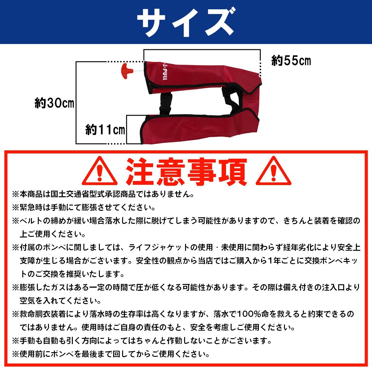 大人気!オリジナルデザイン! ライフジャケット 自動膨張式 肩掛け ベストタイプ レッド/赤 ※男女兼用! フリーサイズ 釣り 船 ボート