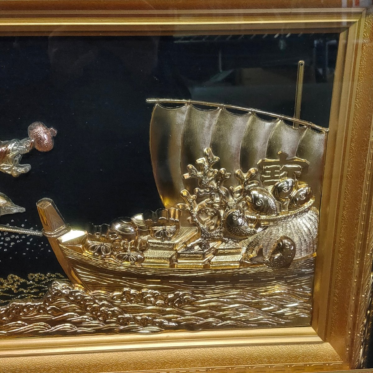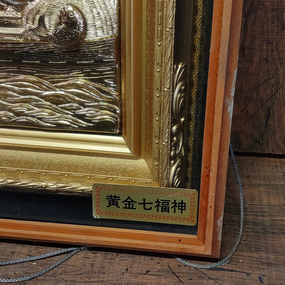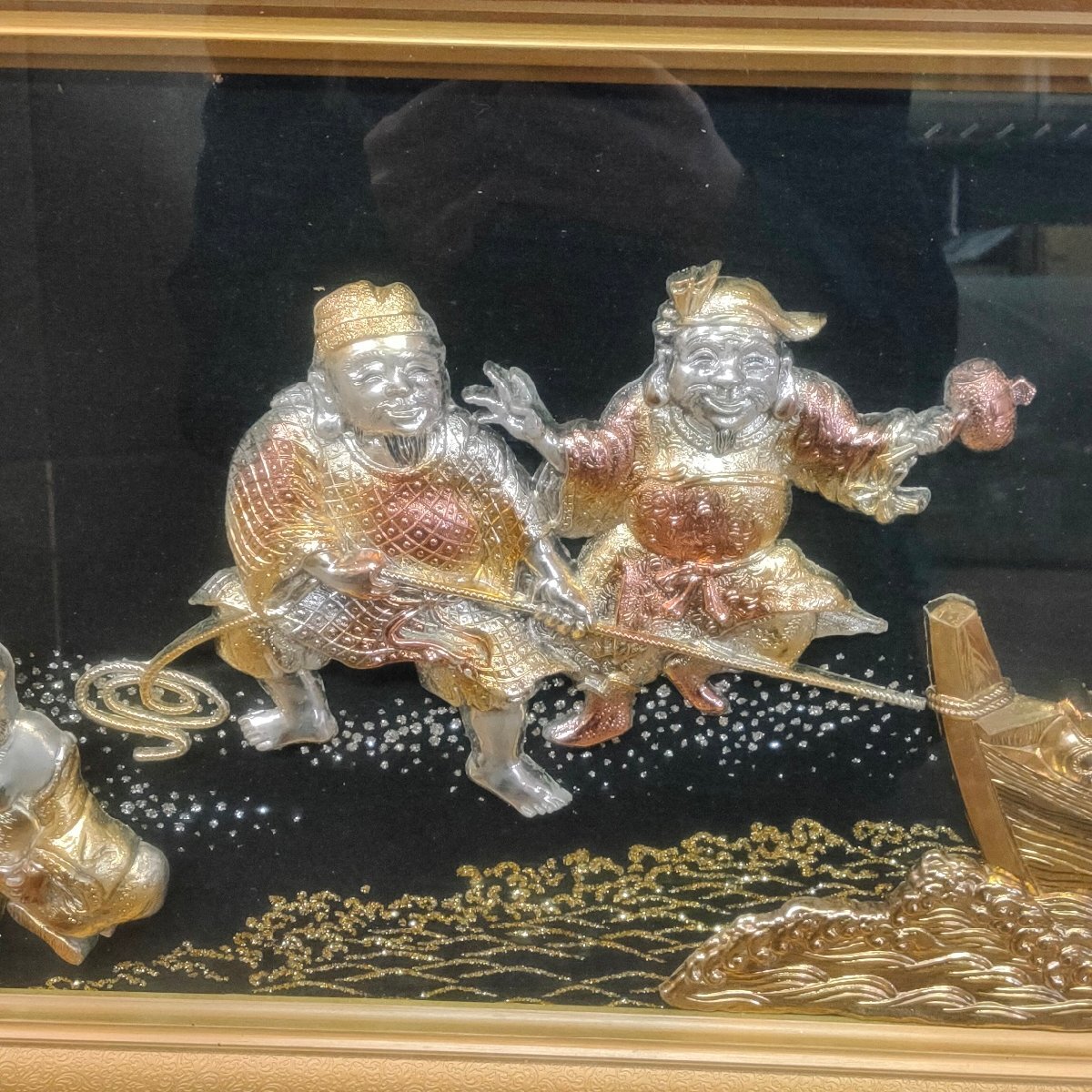 松庵 純金純銀鍍金 24KGP 黄金七福神 宝船 壁掛け 縁起物 幅約94㎝ 飾額 商売繁盛 額装 110609/SR6L