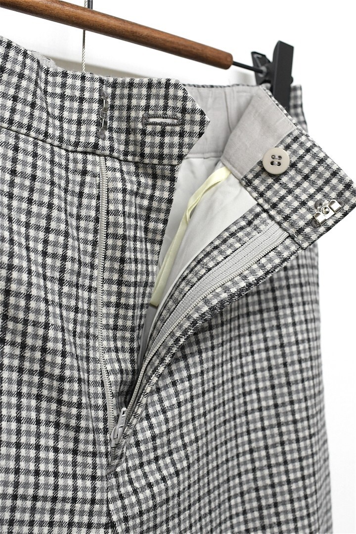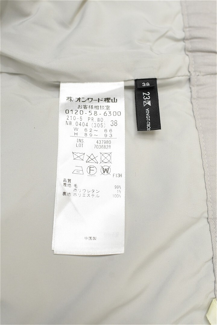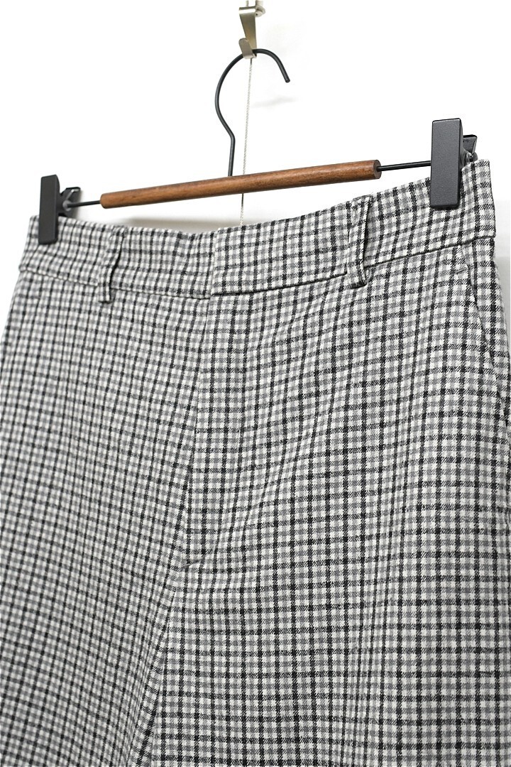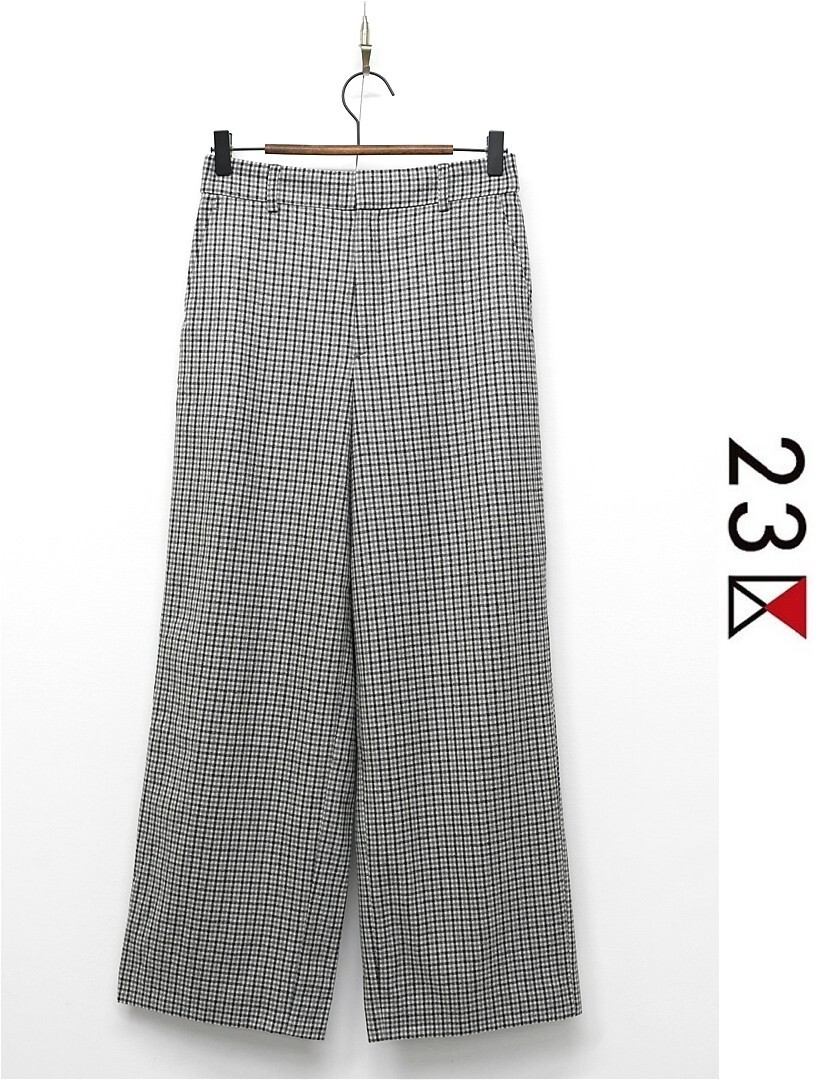 J460/美品 23区 ウールミルドワイドパンツ スラックス ハイウエスト 起毛 チェック 裾シングル ウエストゴム ストレッチ 38 M グレー 秋冬