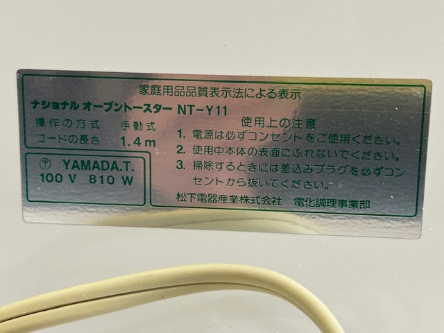 【未使用保管品】 90年代 ビンテージ ナショナル ドーム型 オーブントースター NT-Y11 遠赤外線ヒーター採用 当時物 レトロ