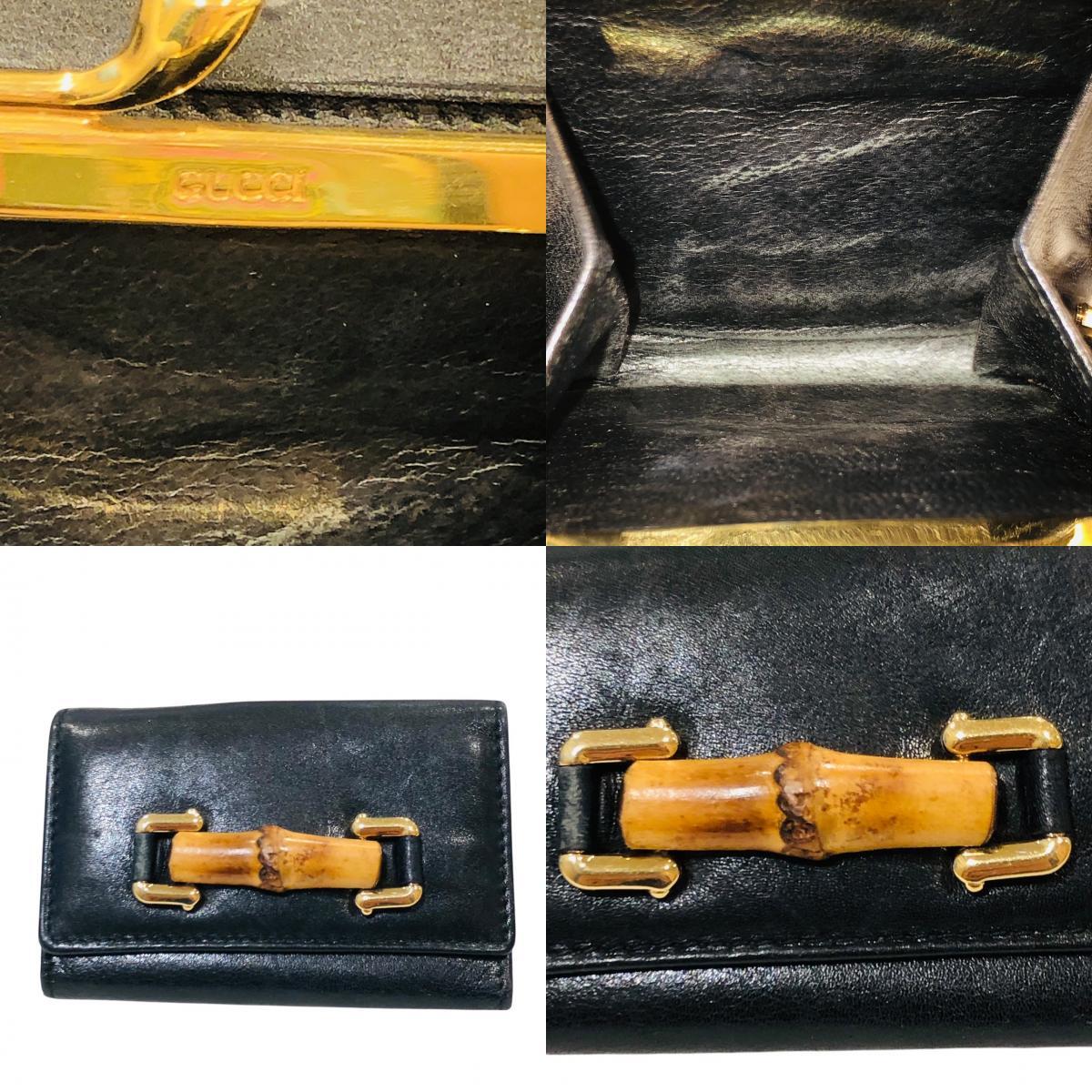 GUCCI グッチ バンブー レザー がま口 二つ折り財布 キーケース6連 ブラック系 2点セット