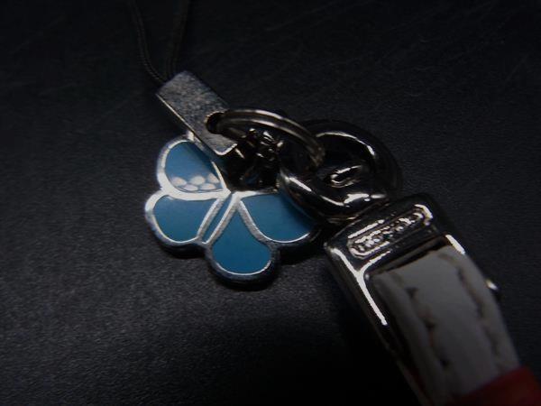 ■美品■ COACH コーチ レザー バタフライ 蝶 ストラップ キーホルダー チャーム レディース アイボリー系×オレンジ系 DI9314