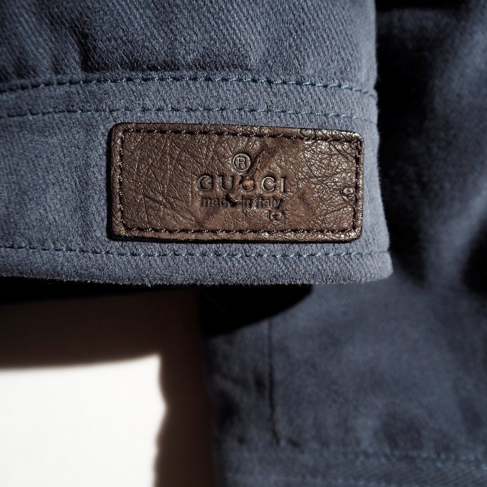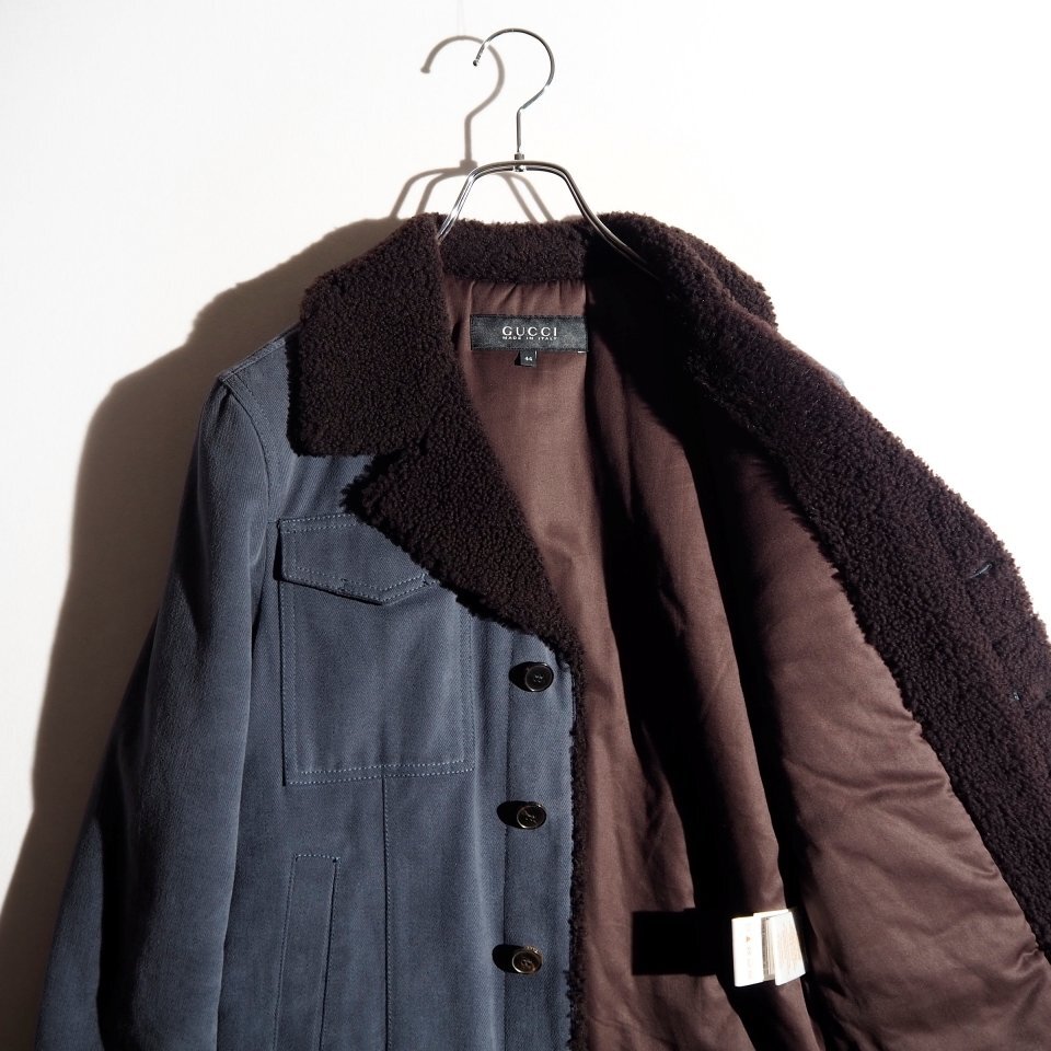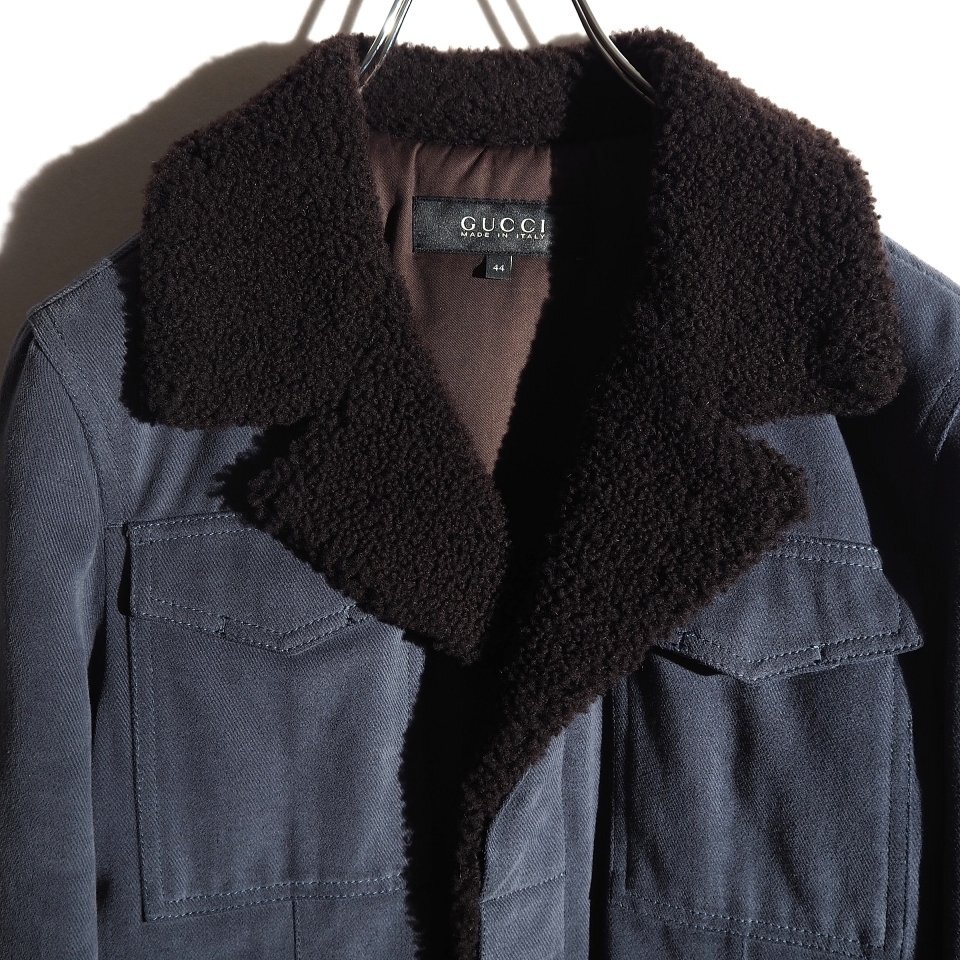 P5536P ▼GUCCI グッチ▼ ムートンボア パデッド モールスキンコットン ジャケット ブルーグレー 44 / 中綿 ブルゾン 秋冬 rb mks