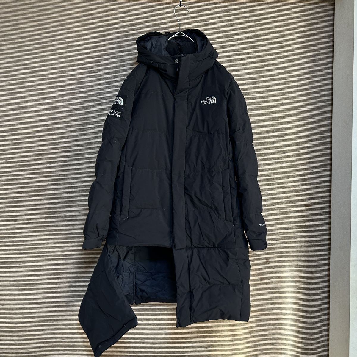 ノースフェイス 2wayロングダウンコート ベンチコート 子供160ブラックF0 古着 入手困難 激レア 人気 レディース 肩ロゴ キッズ